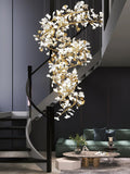 This ceramic ginkgo tree petal chandelier shows its luxurious style in overall design, material, and manufacturing technology. The metal lamp body is covered with exquisite ceramic petals, which reflects the perfect combination of lighting design and natural plants.