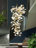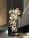 Experience the luxurious style and exquisite design of the Gingko Chandelier Z. Handcrafted porcelain leaves and metal body create a mesmerizing light sculpture, bringing warmth and well-being to any space. With its natural and dynamic energy, it's not just a light but a captivating artwork.
