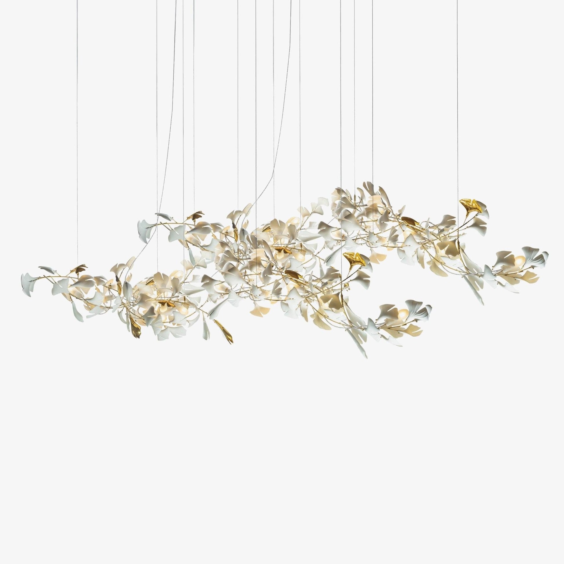 This ceramic ginkgo tree petal chandelier shows its luxurious style in overall design, material, and manufacturing technology. The metal lamp body is covered with exquisite ceramic petals, which reflect the perfect combination of lighting design and natural plants.