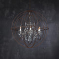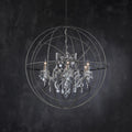 The Gyro Crystal chandelier is inspired by nineteenth century experimental physicist Leon Foucault's gyroscope. In the Gyro Crystal Double, a double layer of aged metal spheres is fixed around a traditional Georgian style chandelier, colliding industrial accents with romance and glamour.