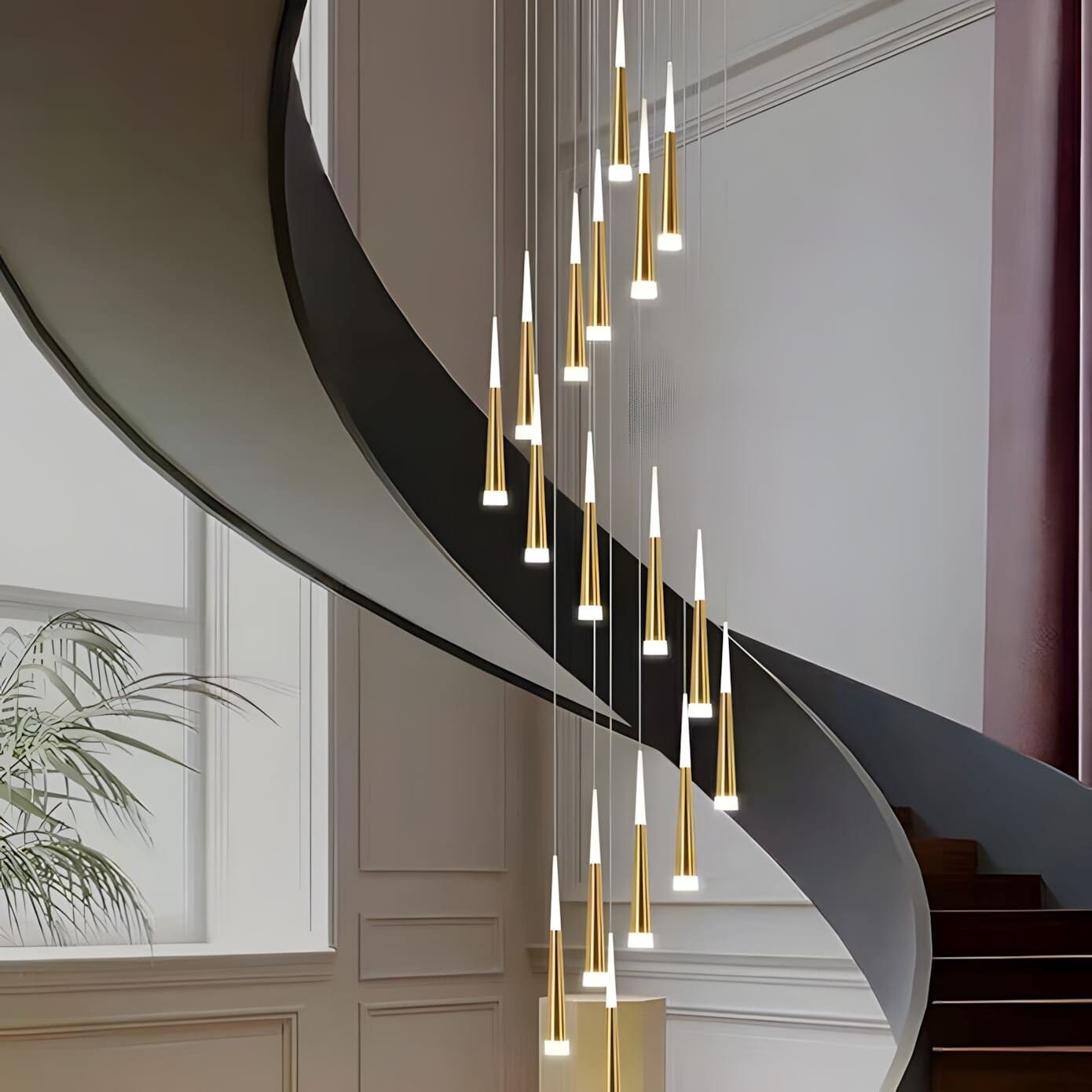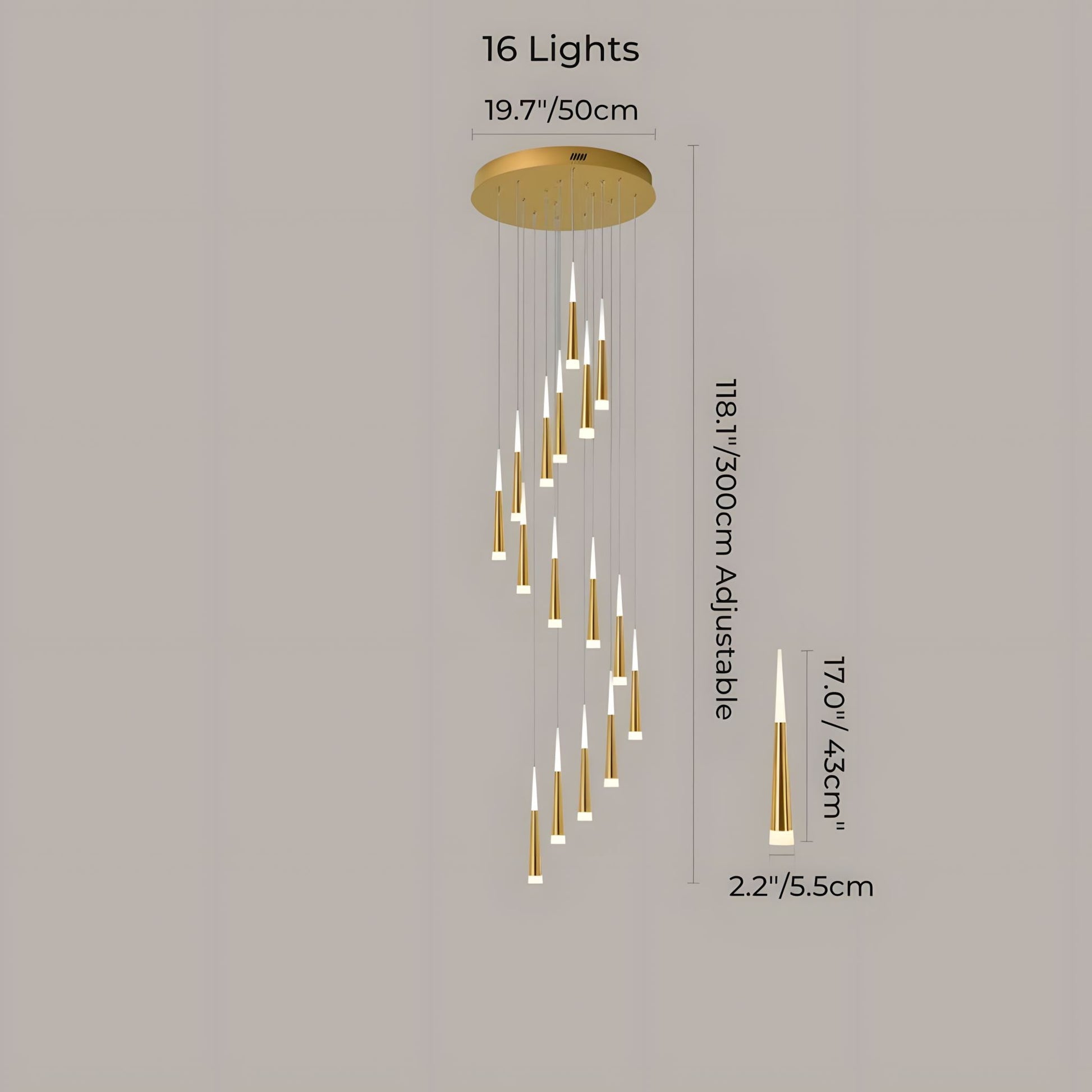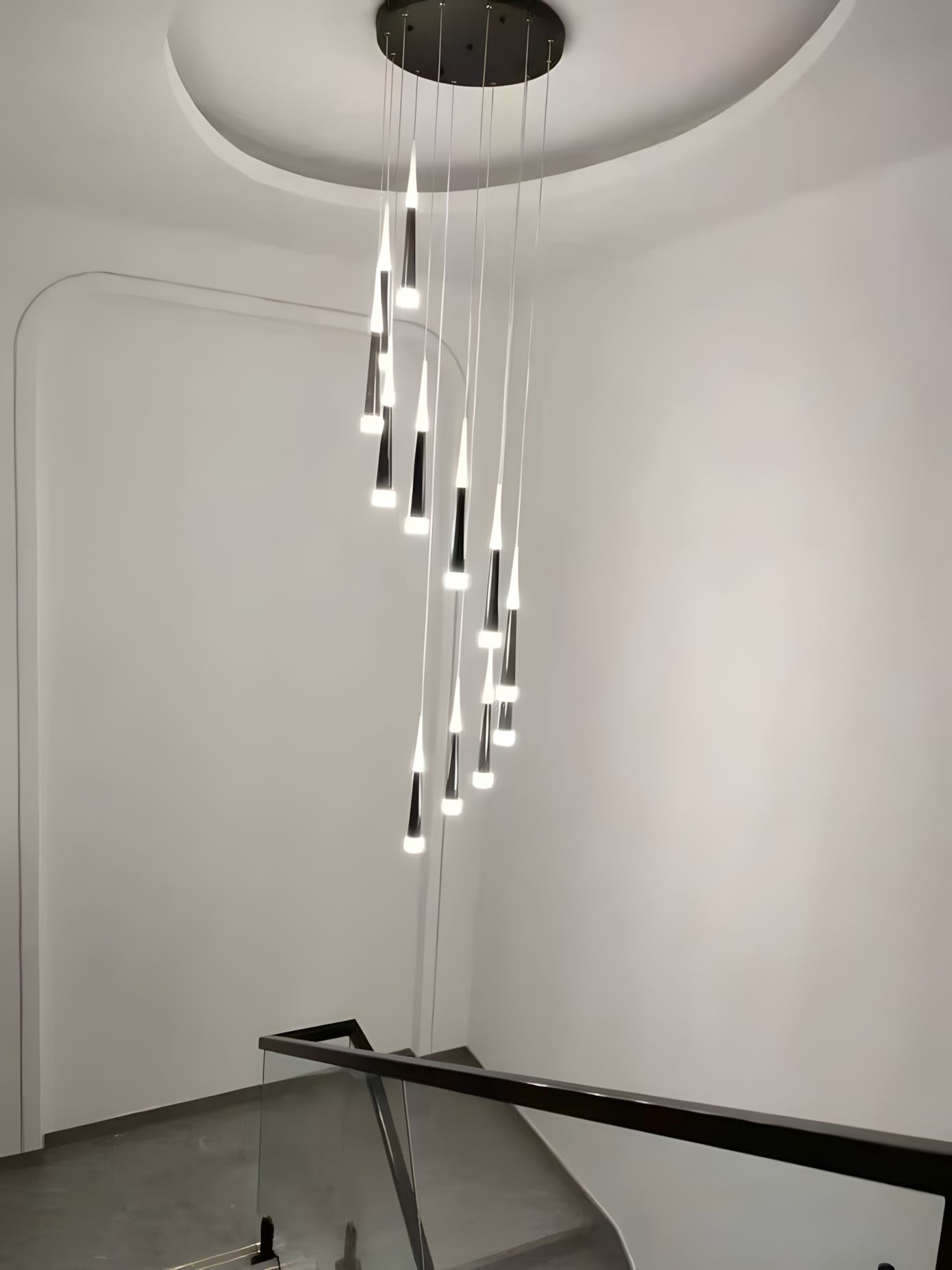 Contemporary in style and elegant in appearance, this masterpiece will catch anyone's eye with its striking contemporary design and captivating spiral staircase structure. The chain length is adjustable, with a weight of 6.9kg and a maximum compatible wattage of 120W.