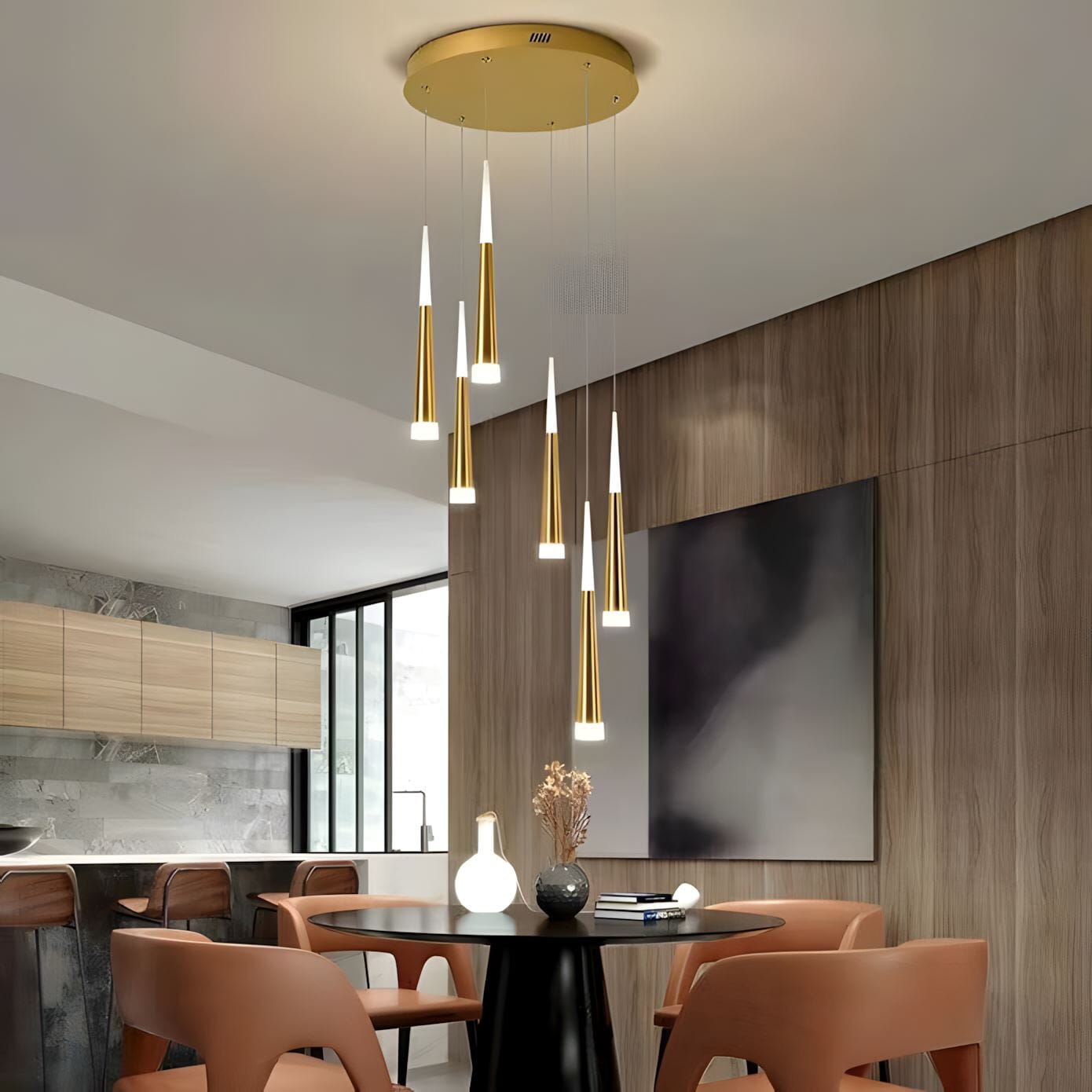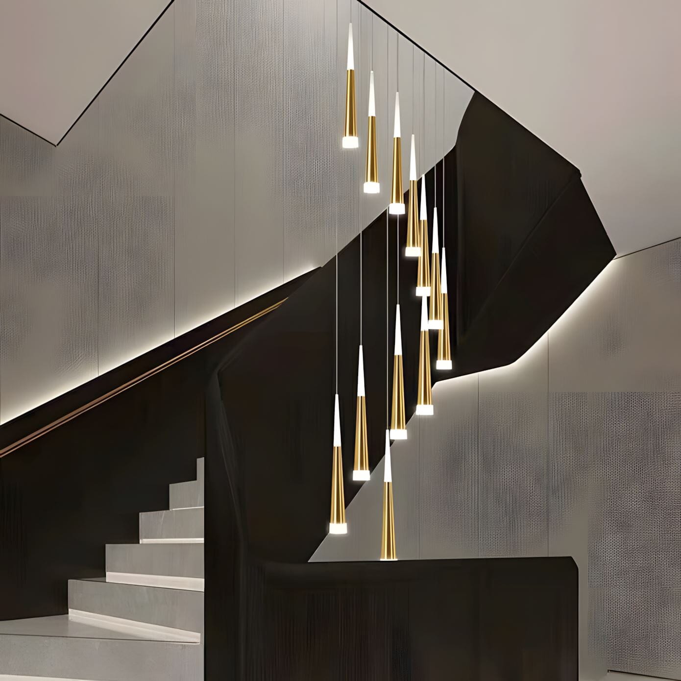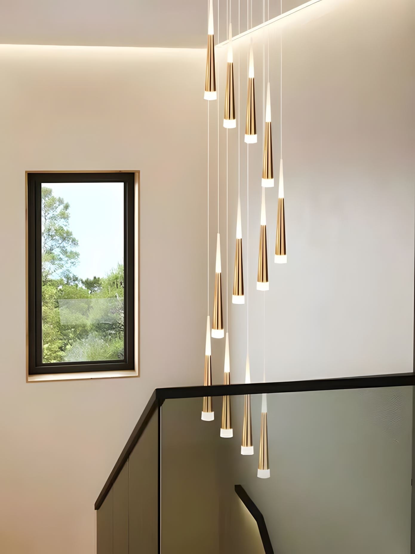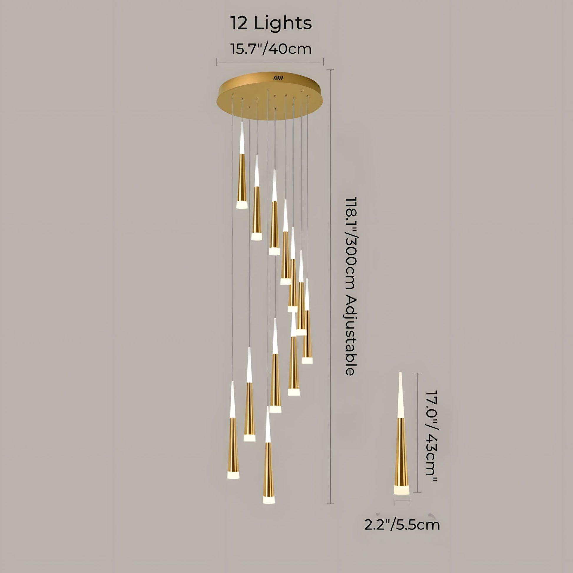 Contemporary in style and elegant in appearance, this masterpiece will catch anyone's eye with its striking contemporary design and captivating spiral staircase structure. The chain length is adjustable, with a weight of 6.9kg and a maximum compatible wattage of 120W.