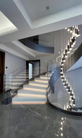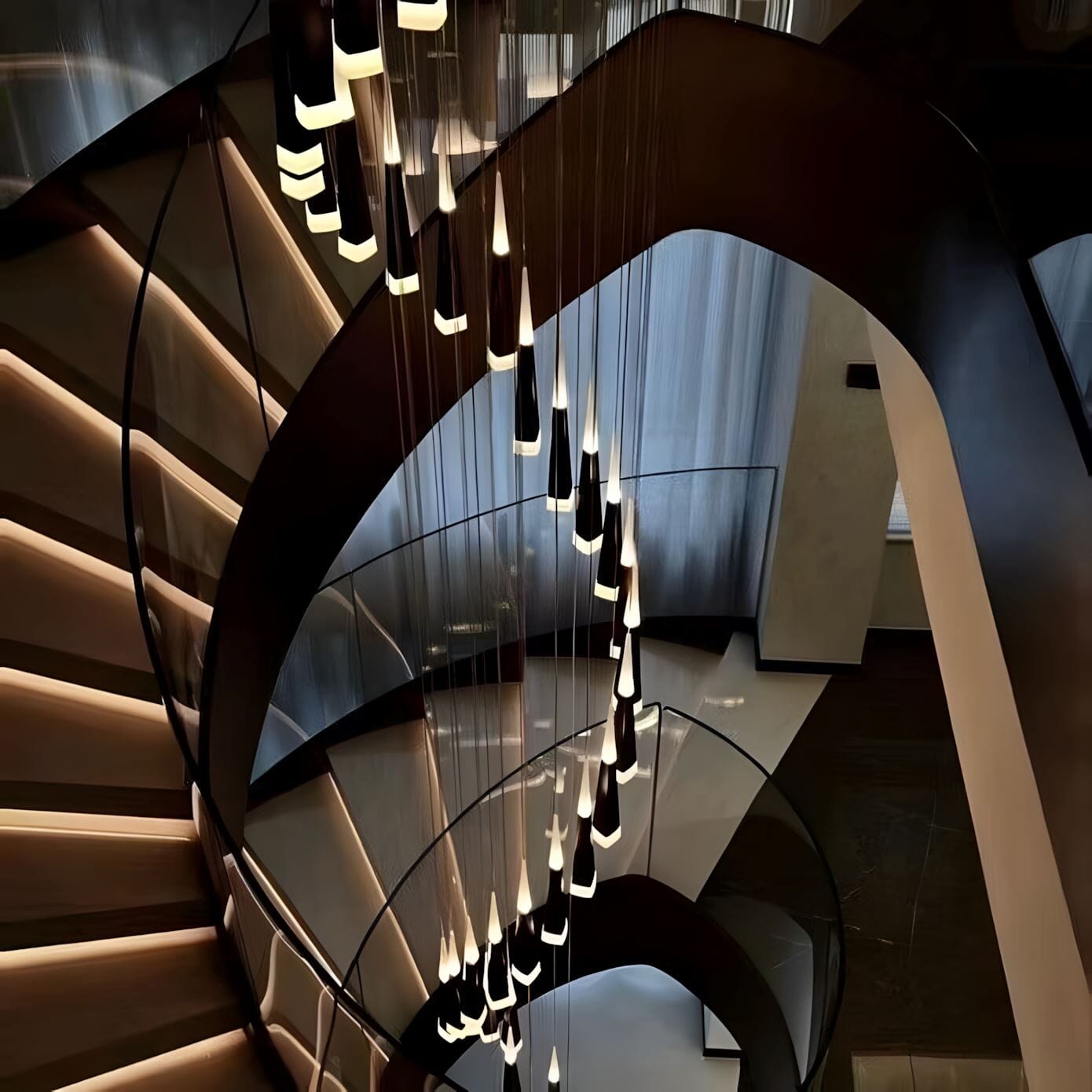 Bring home our exquisite Hail spiral staircase chandelier for the perfect blend of style and functionality. Crafted with exceptional precision, this breathtaking chandelier boasts a sturdy aluminum and acrylic body that can withstand high temperatures without issue. The light is dimmable and color changeable via remote control.