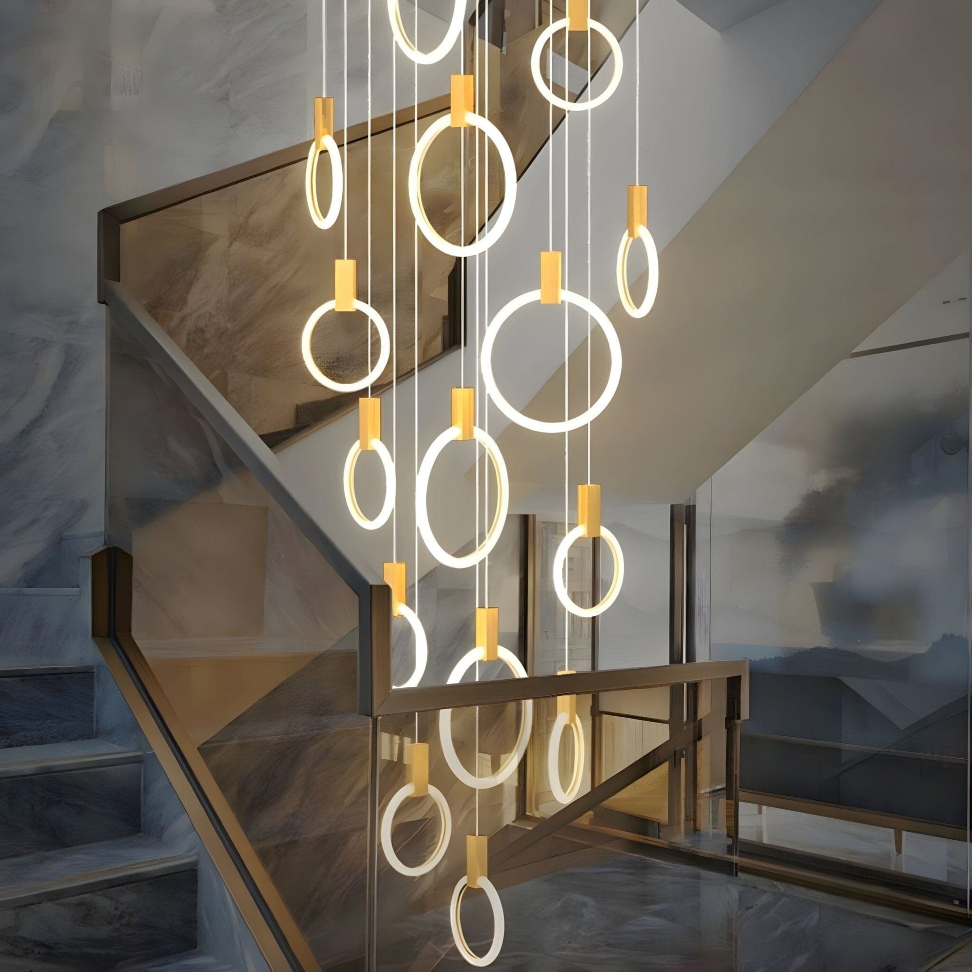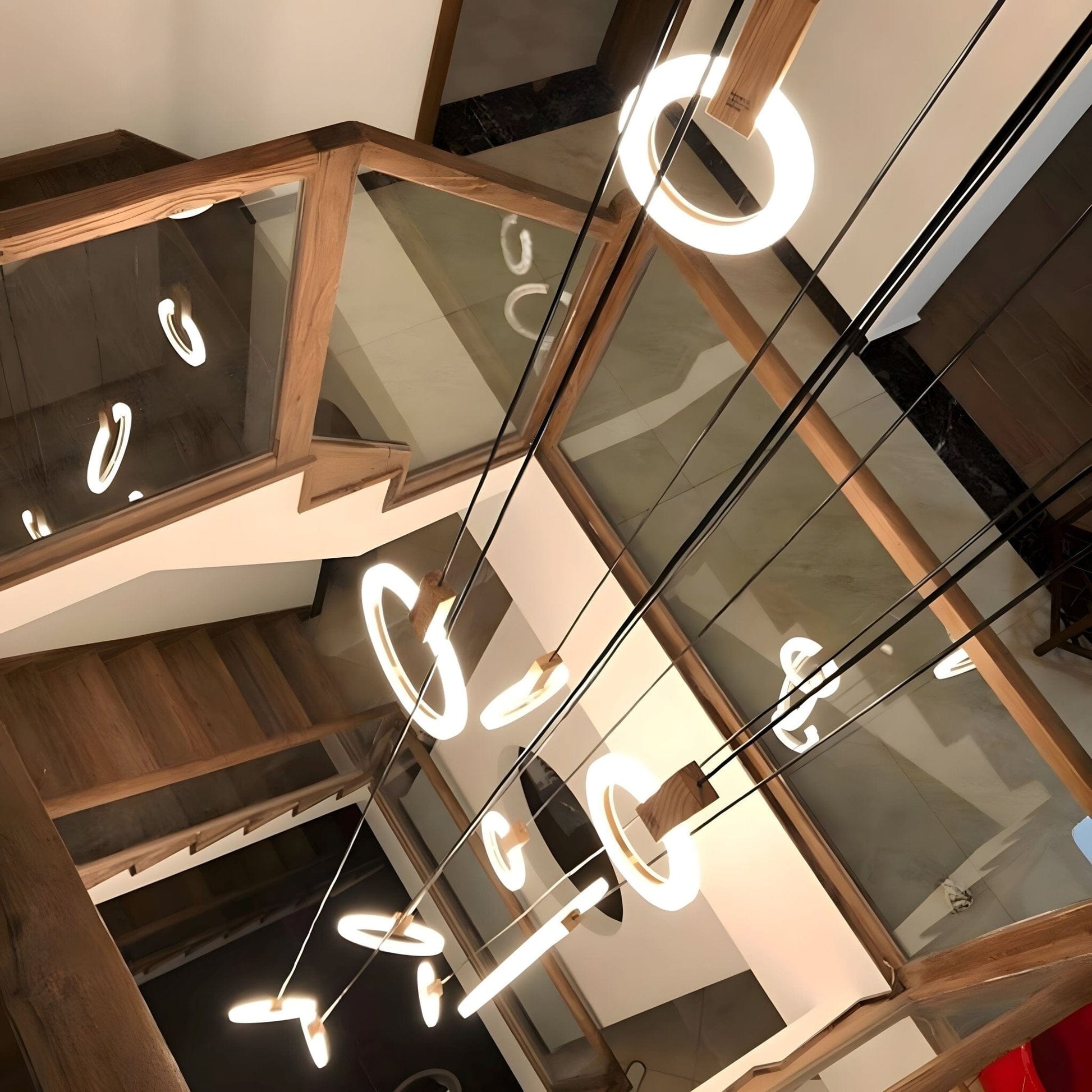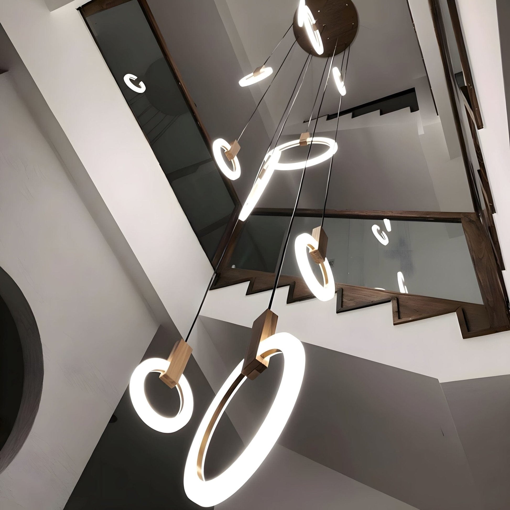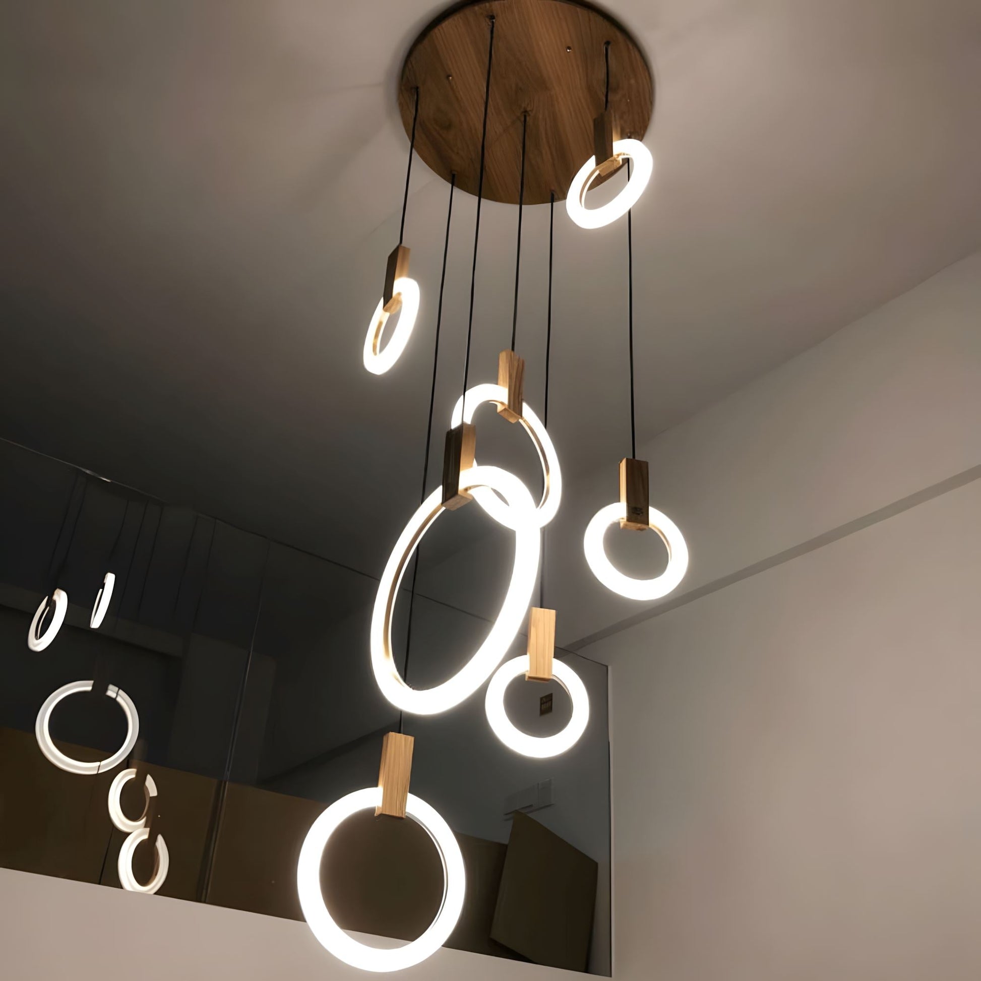 Customize the chandelier to suit your space, whether you choose a single light ring or an expansive eighteen-light ring structure. This chandelier is ideal for diverse settings such as a cozy living room, modern office, or grand entryway, adding a touch of elegance. It is particularly striking in stairways due to its length. If you are looking for a chic wooden pendant light that combines style with LED energy efficiency, this wooden light-tiered chandelier is the perfect choice.