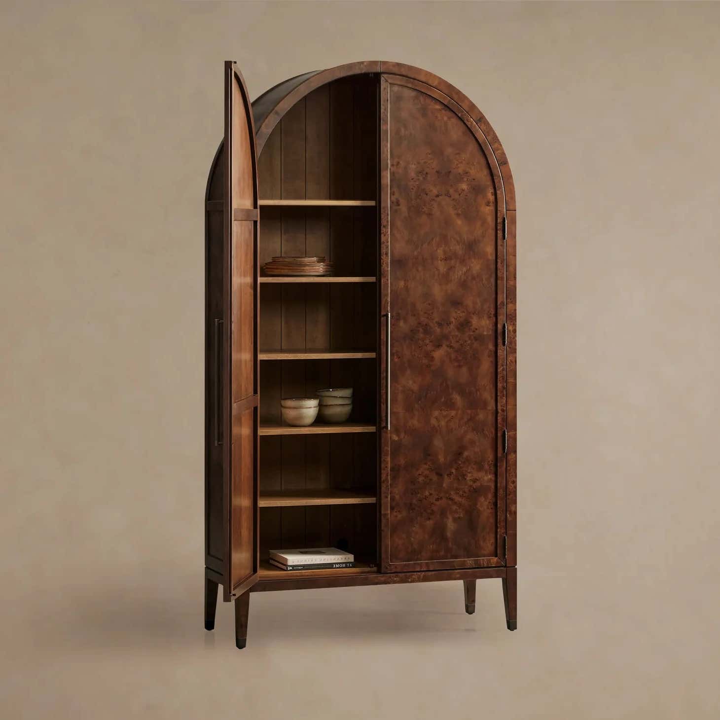 - Crafted from mappa burl wood veneer; swirling burl designs will vary, making your Hattie a one-of-a-kind piece.