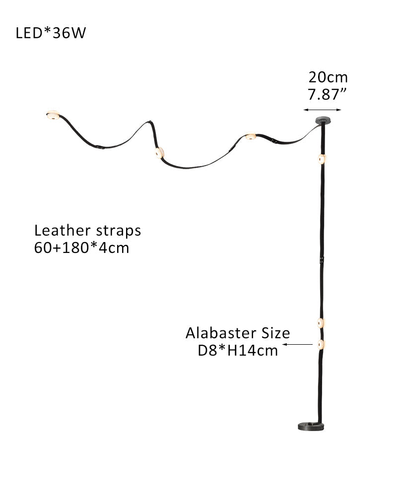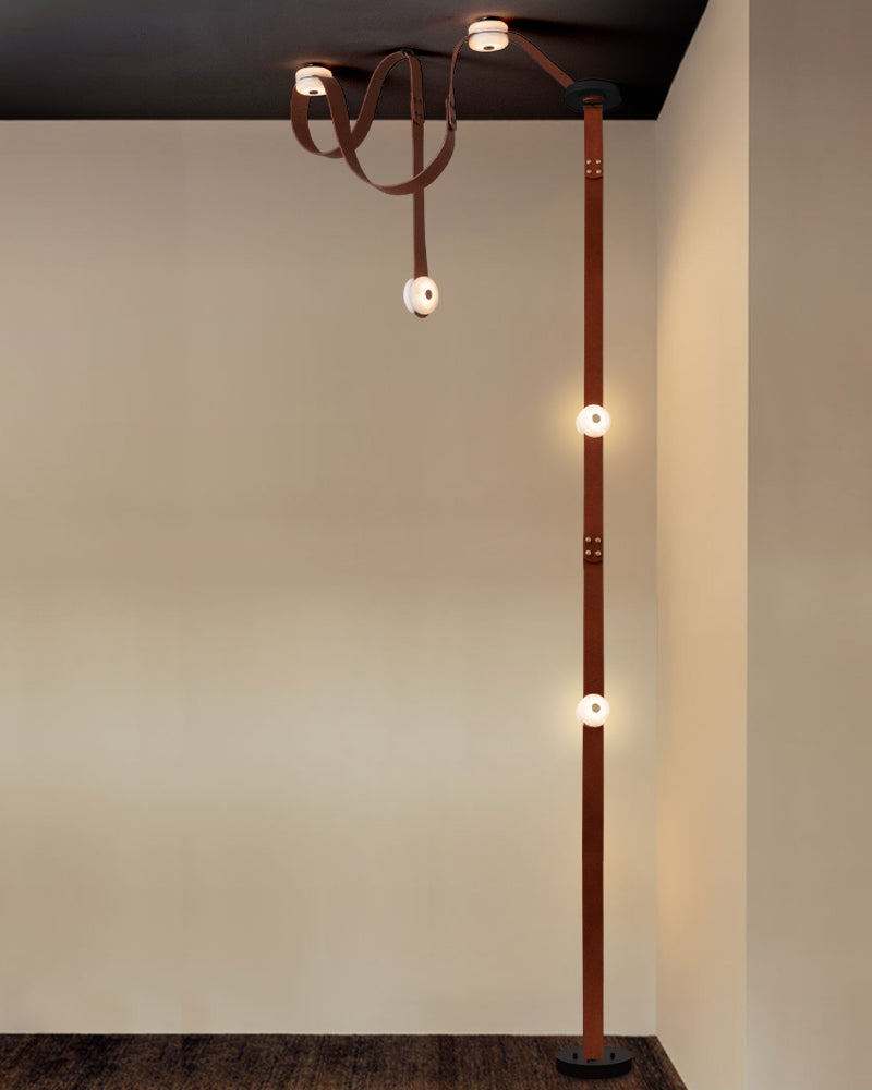 - Fine leather straps enable flexible hanging/swagging. Extendable via add-ons.