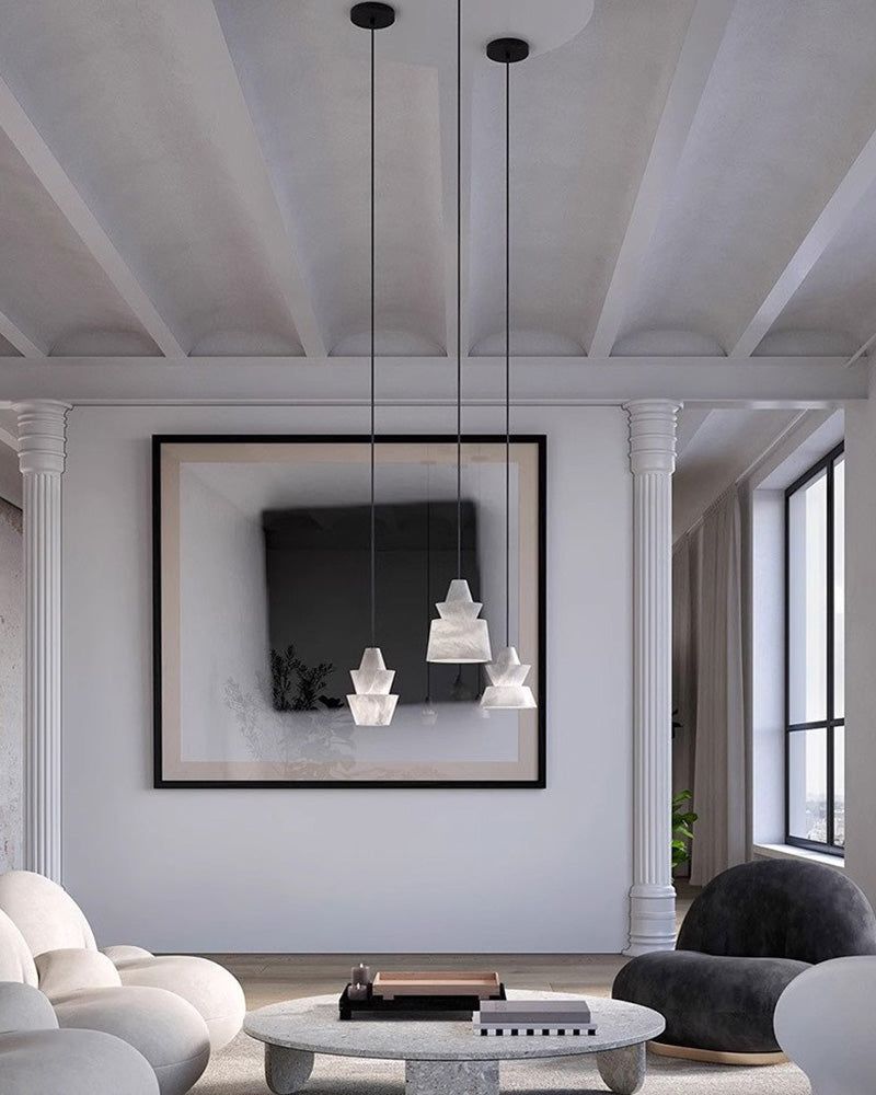 - Sleek, layered cones create a sculptural focal point for contemporary interiors.
