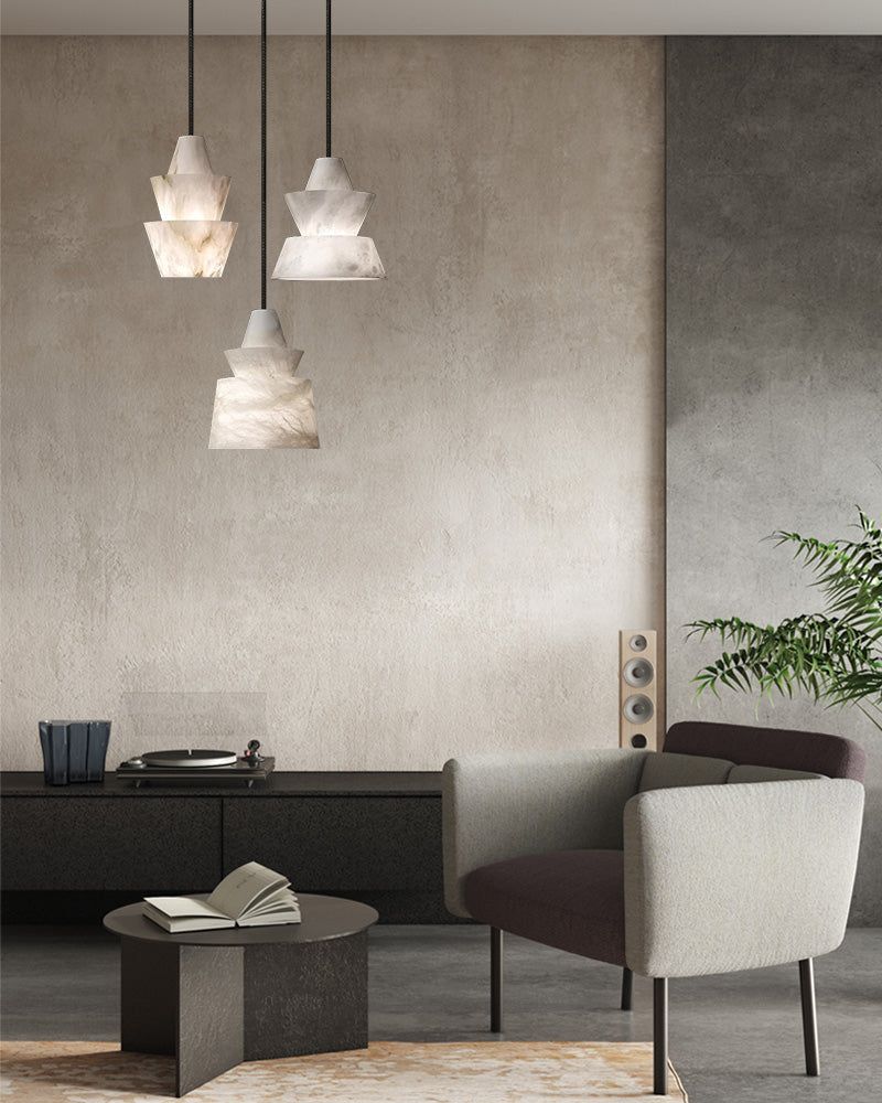 Brianna Alabaster Dining Table Pendant Modern Stacked Conical Pendant Light