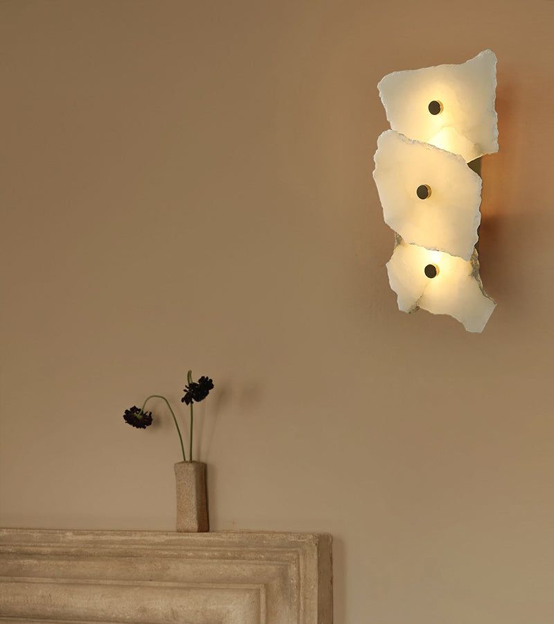 Art Decor Multiple Irregularity Shape LED Brass wall sconces White Alabaster Shade