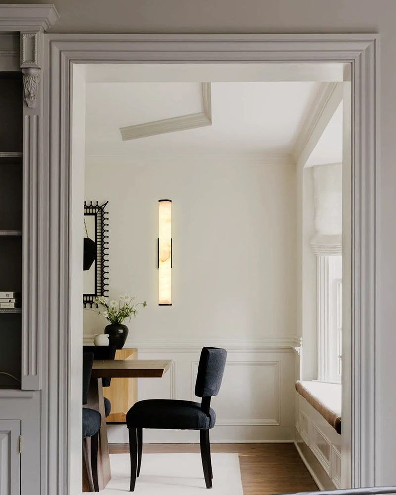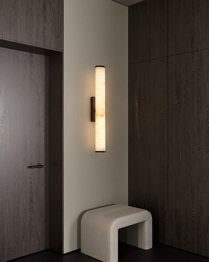 LED Copper Cylindrical Natural Marble Alabaster Wall Sconce Lamp