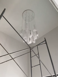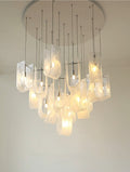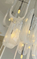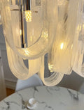 The Luminous Waves Chandelier is a breathtaking fusion of modern elegance and artistic innovation, designed to elevate any space with its ethereal beauty. Crafted from hand-blown, frosted glass, each cascading element mimics the fluidity of gentle waves, softly diffusing warm light to create a mesmerizing glow. Suspended by sleek, minimalist metal rods, this chandelier strikes a perfect balance between contemporary design and timeless sophistication. Ideal for dining areas, living rooms, or luxury interiors, the Luminous Waves Chandelier transforms your space into a serene sanctuary of light and style. Illuminate your home with this stunning statement piece that embodies both artistry and ambiance.