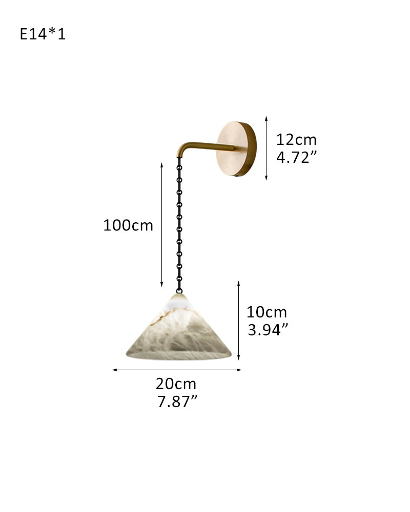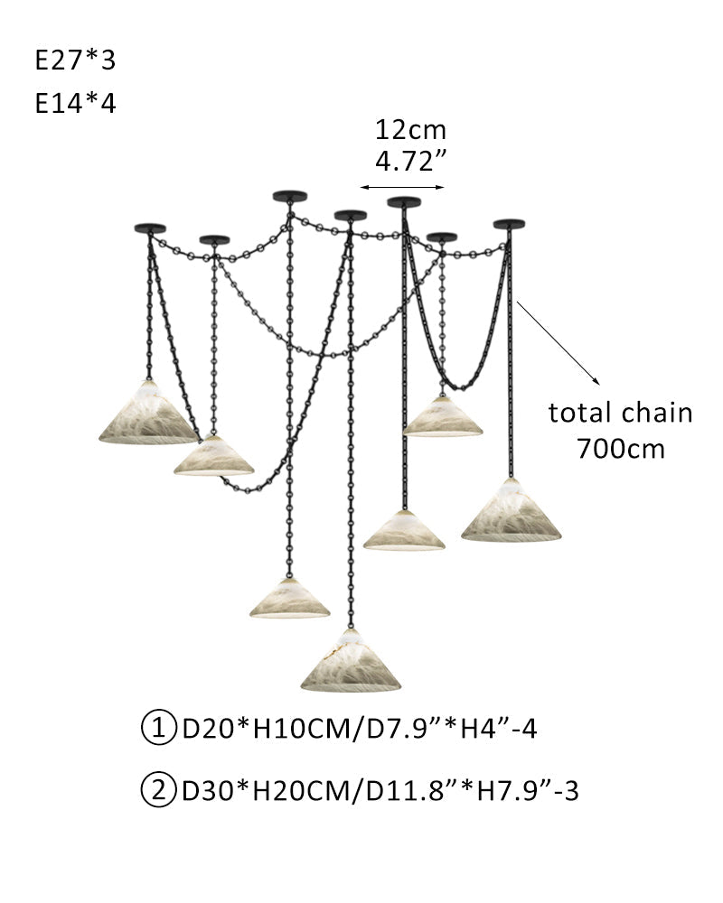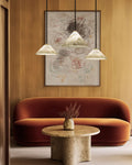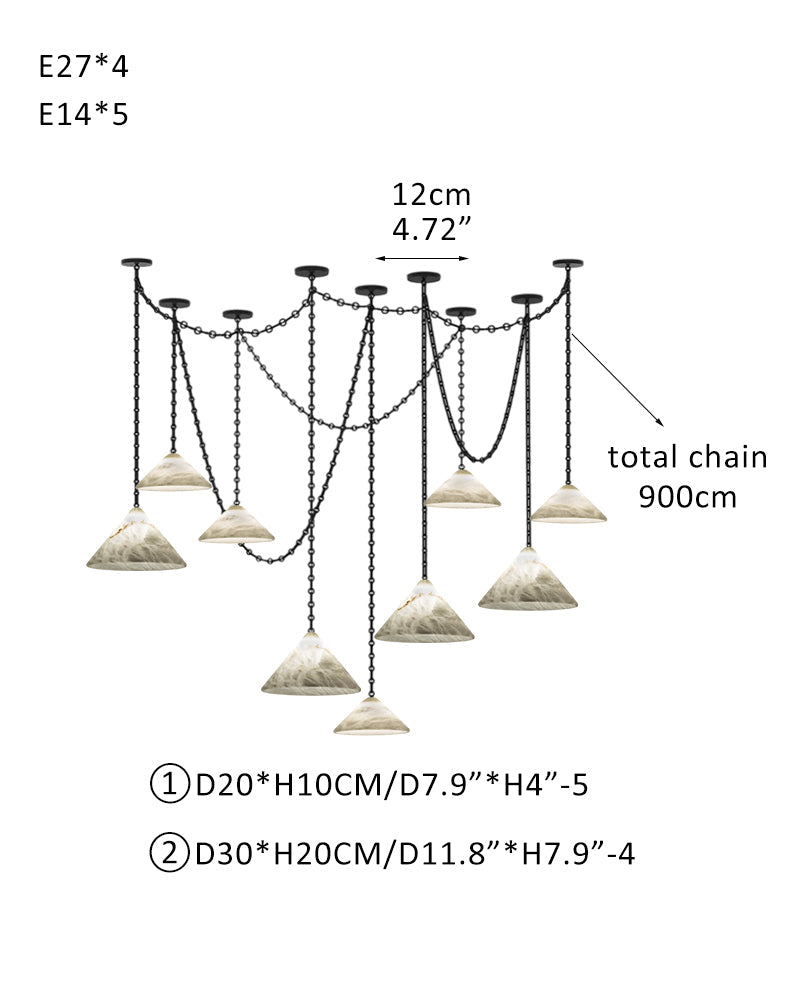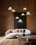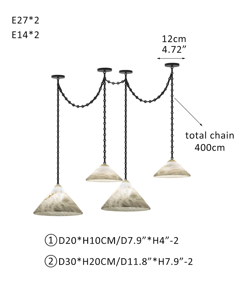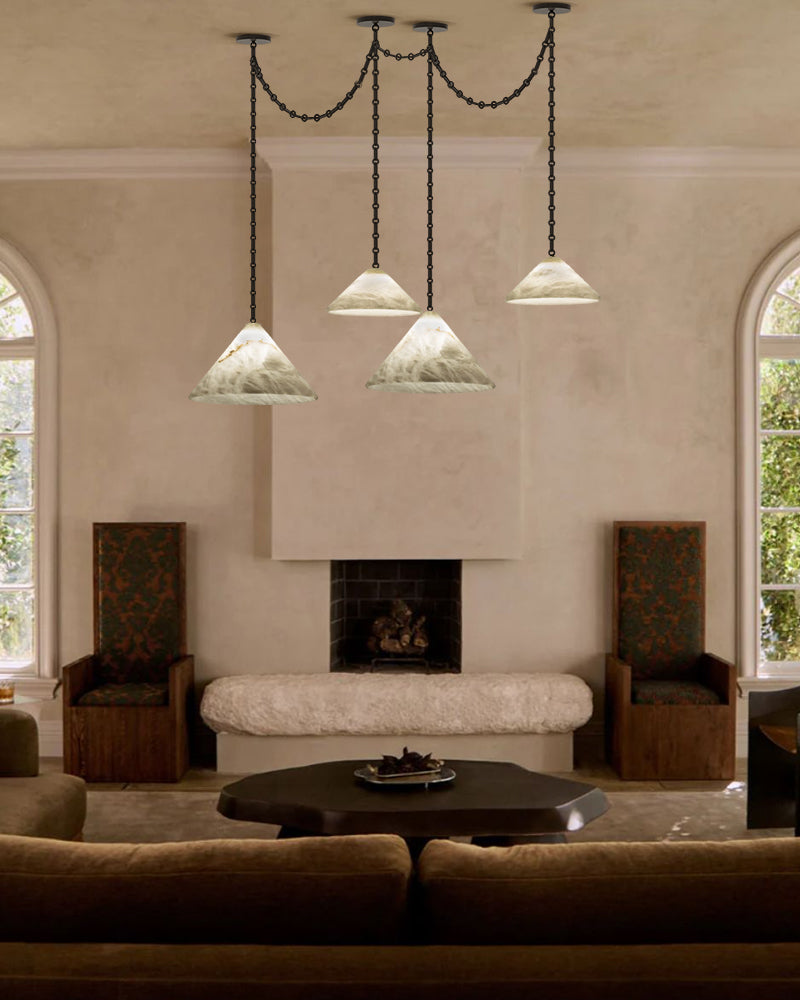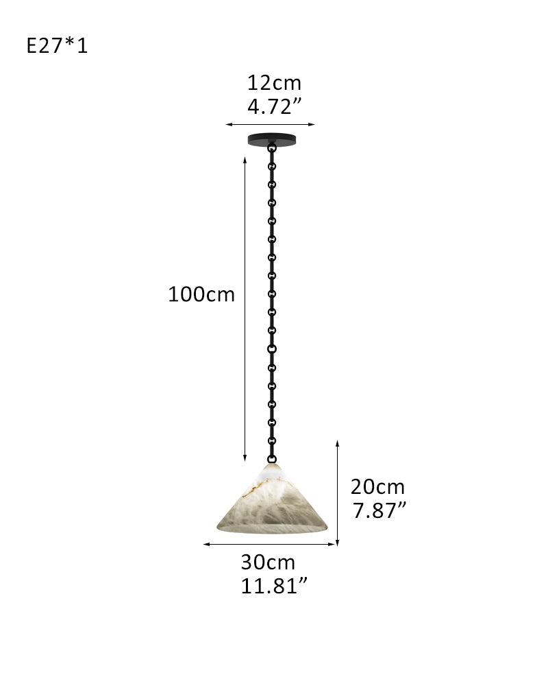 Medium 12" Conical Pendant White Alabaster Shade with Adjustable Chain for living room