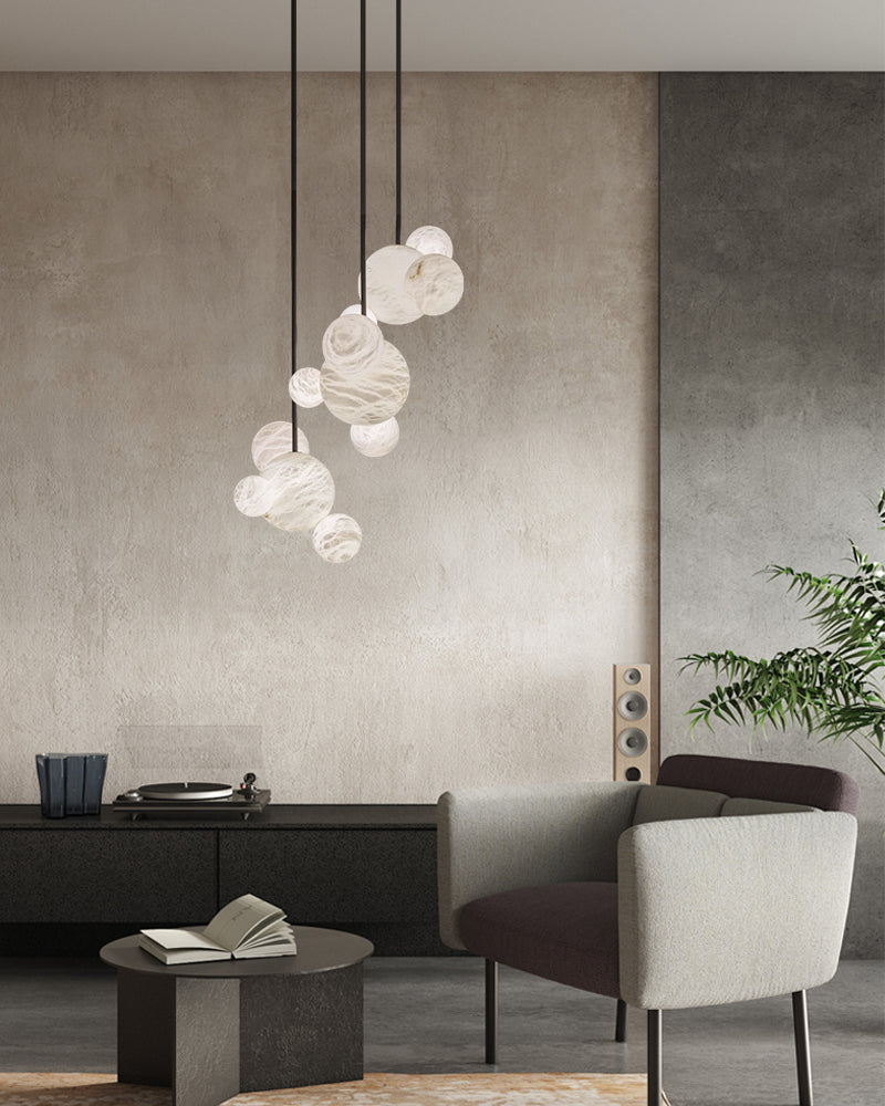 Minimalist Antique Alabaster Cluster Pendant Light Fixtures 6" Wide
