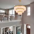 Modern 3-Tier Round Alabaster Chandelier-Gold