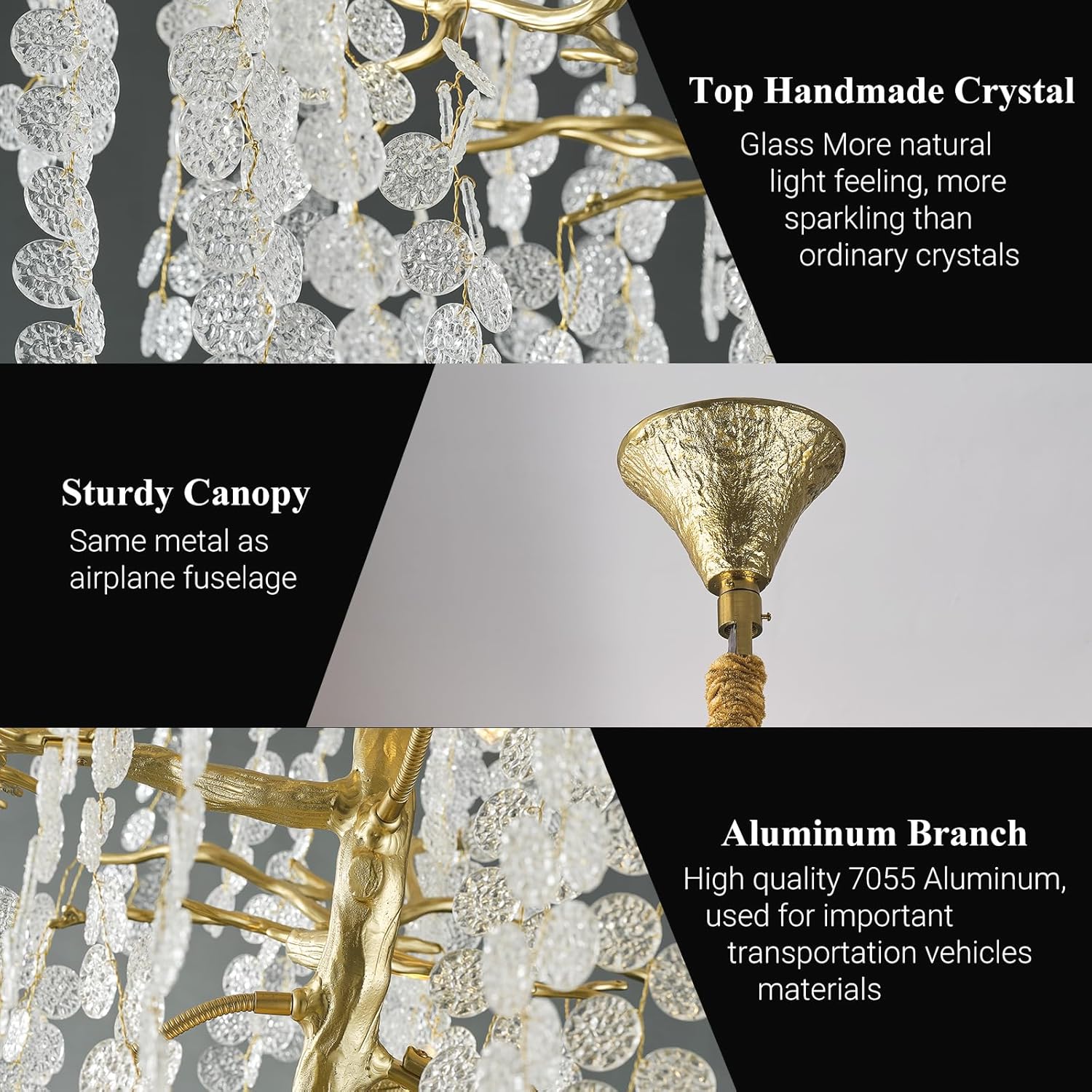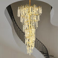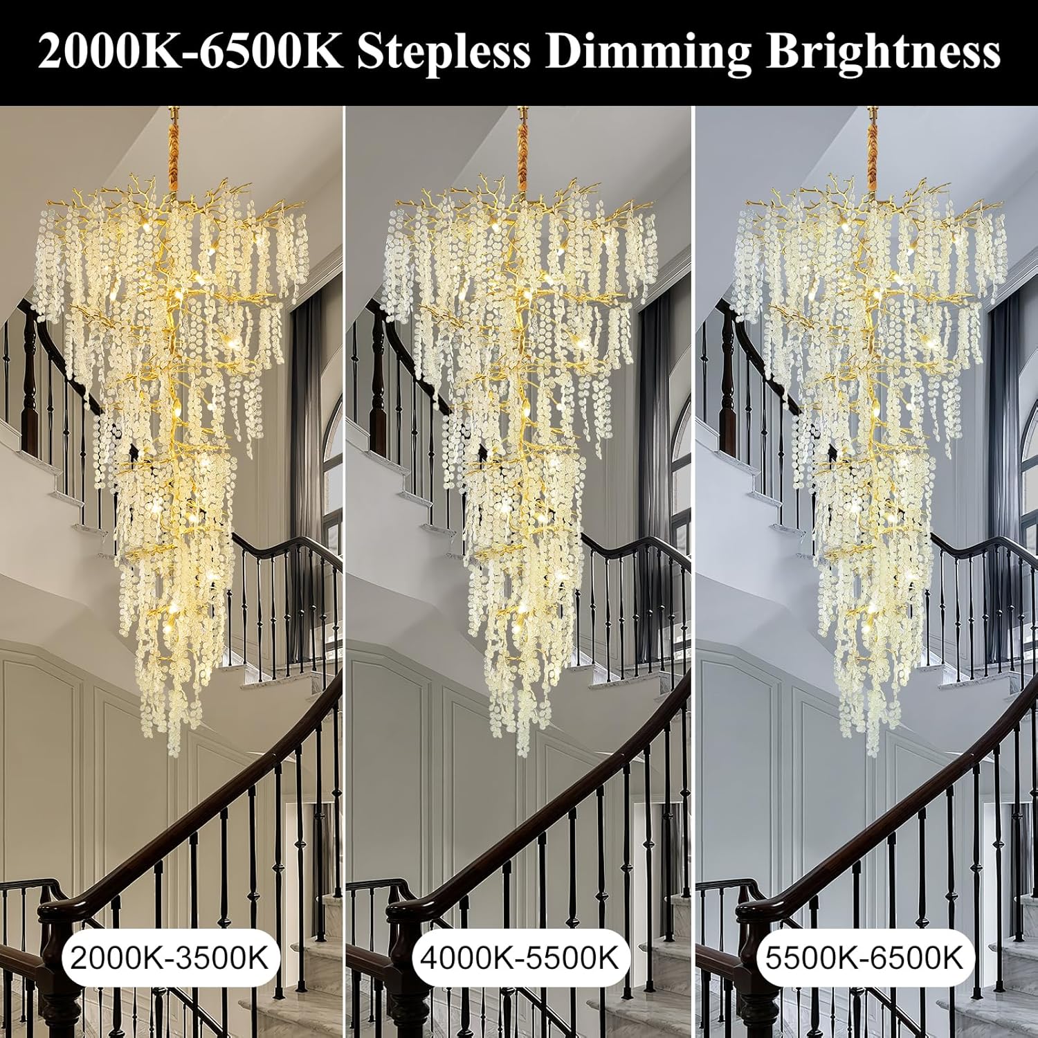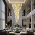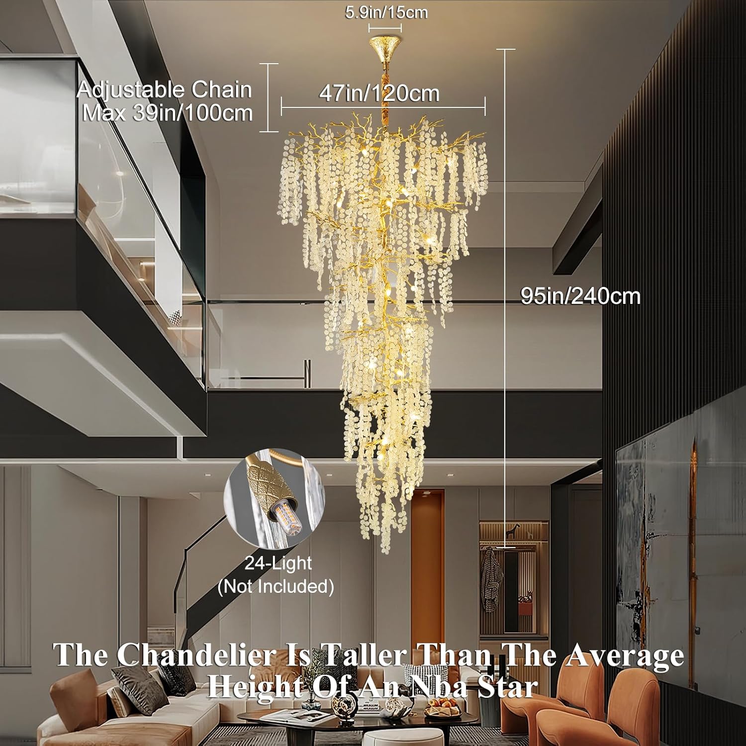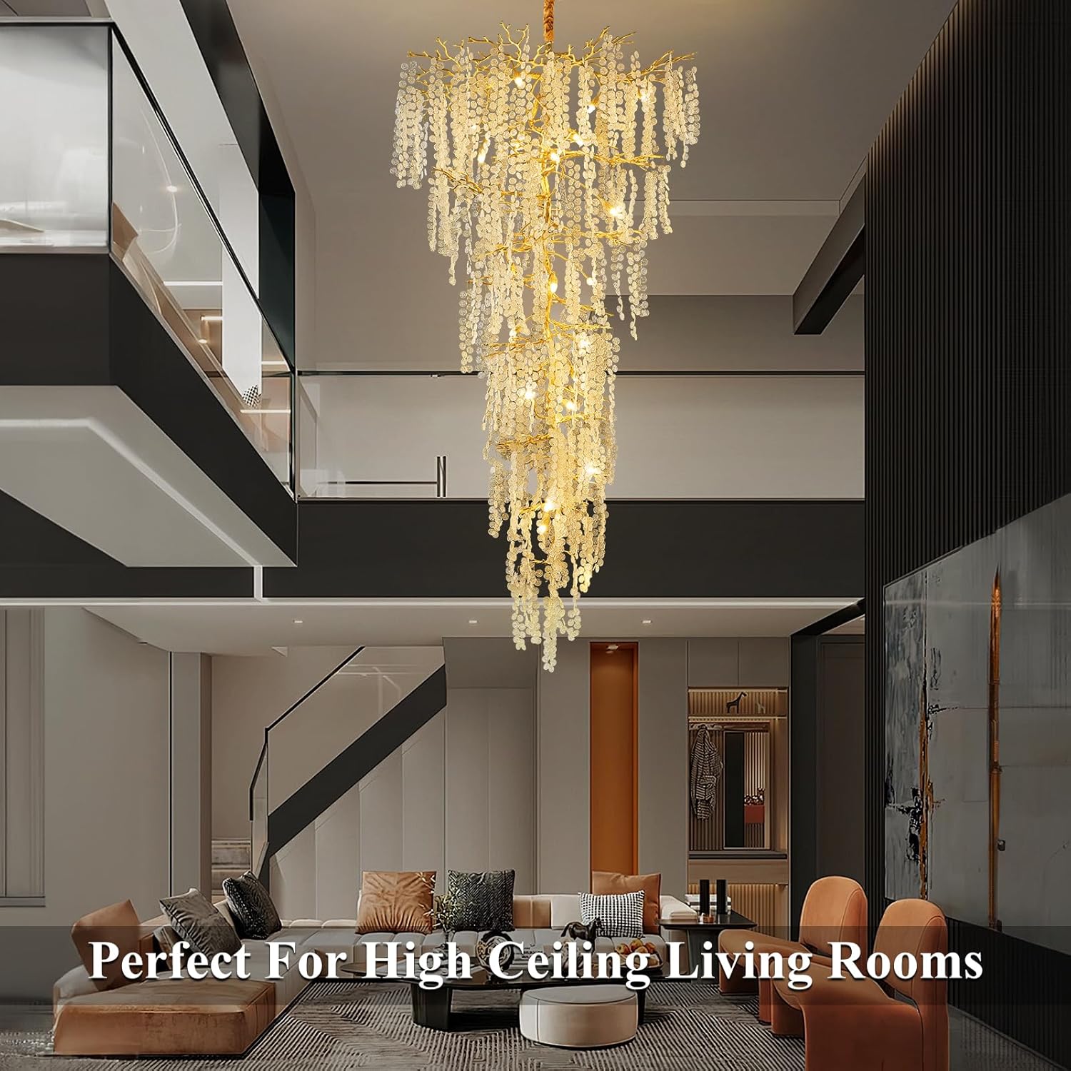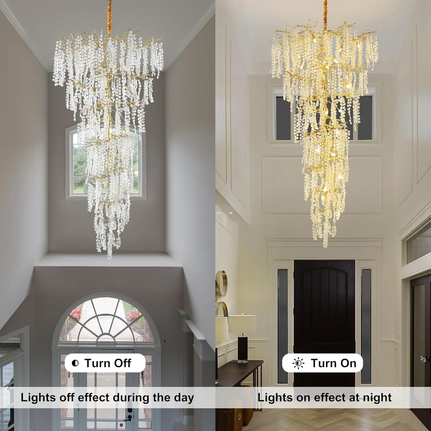 Stunning Snow Strips Design:The design is inspired by the natural strips of snow in winter.Crafted with exquisite crystal accents and a sleek modern design, this large gold foyer chandelier light fixture exudes elegance and sophistication, instantly transforming any space into a luxurious retreat.