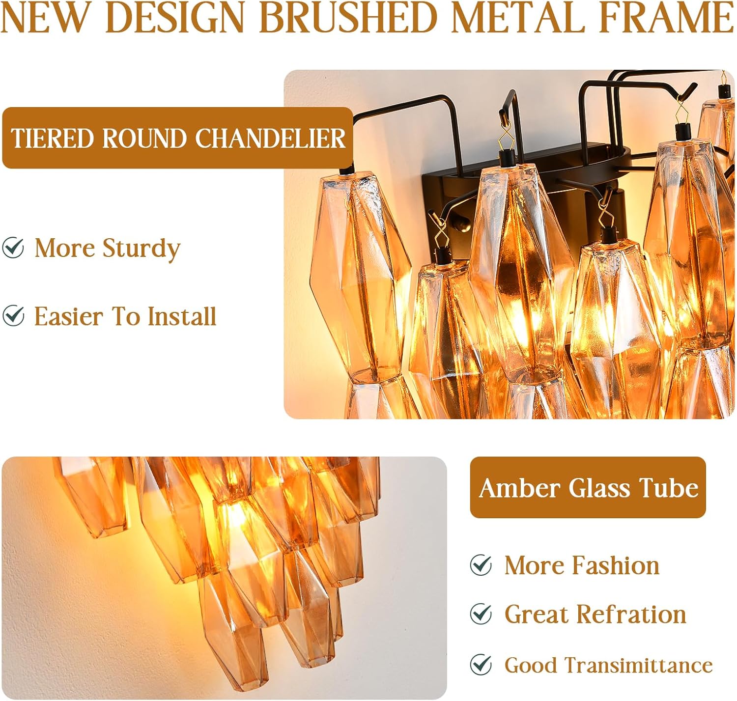 The brass sconces for bathroom features unique amber glass design. The wall lighting lampshade is made of tiered glass, all amber glass tubes are suspended on the metal frame, combining with the room decorated to create an atmosphere of elegance and luxury. The beautiful glass lampshade refract different colors of light, creating a warm and soft lighting atmosphere. No matter your interior decor style is modern, luxury, or elegant, this gold wall light will be an excellent addition!