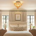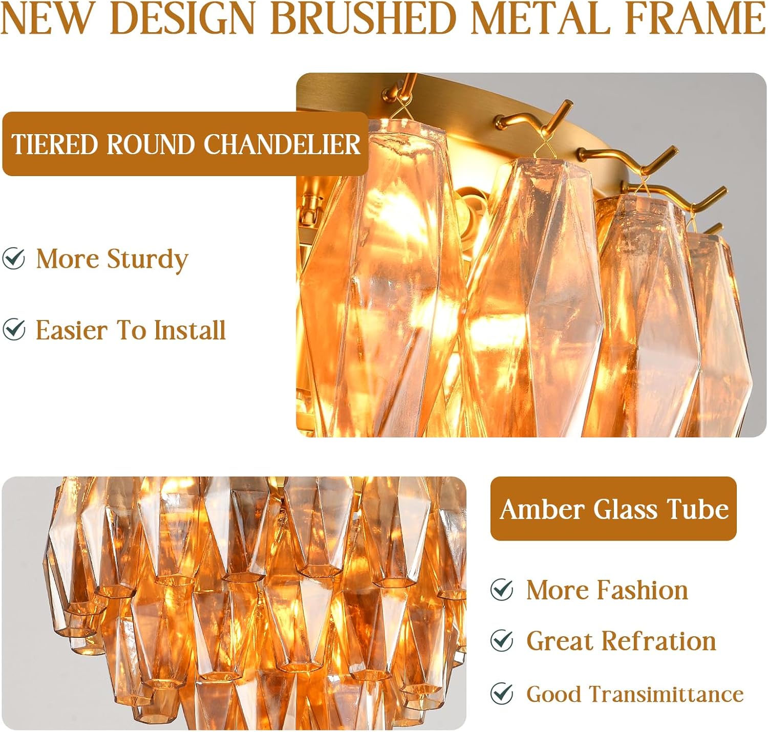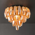 The Ceiling Light for Dining Room features unique smoke glass design. The flush mount ceiling light lampshade is made of tiered glass, all smoke glass tubes are suspended on the metal frame, combining with the room decorated to create an atmosphere of elegance and luxury. The beautiful glass lampshade refract different colors of light, creating a warm and soft lighting atmosphere. No matter your interior decor style is modern, luxury, or elegant, this gold ceiling light will be an excellent addition!