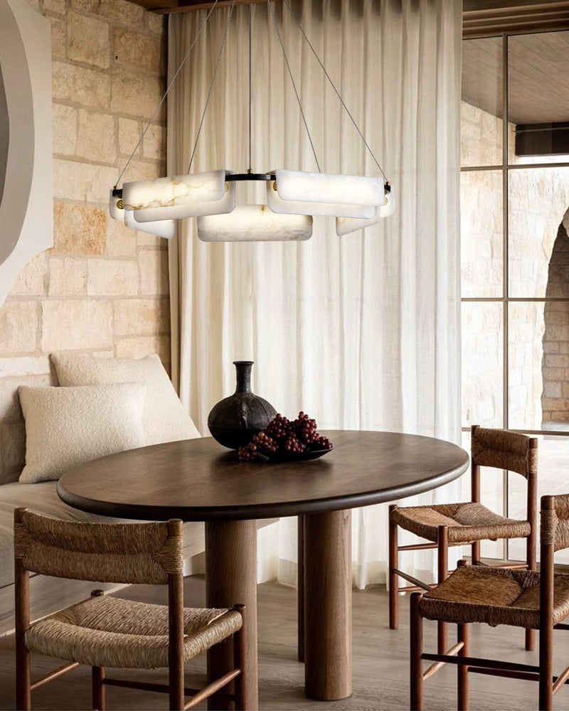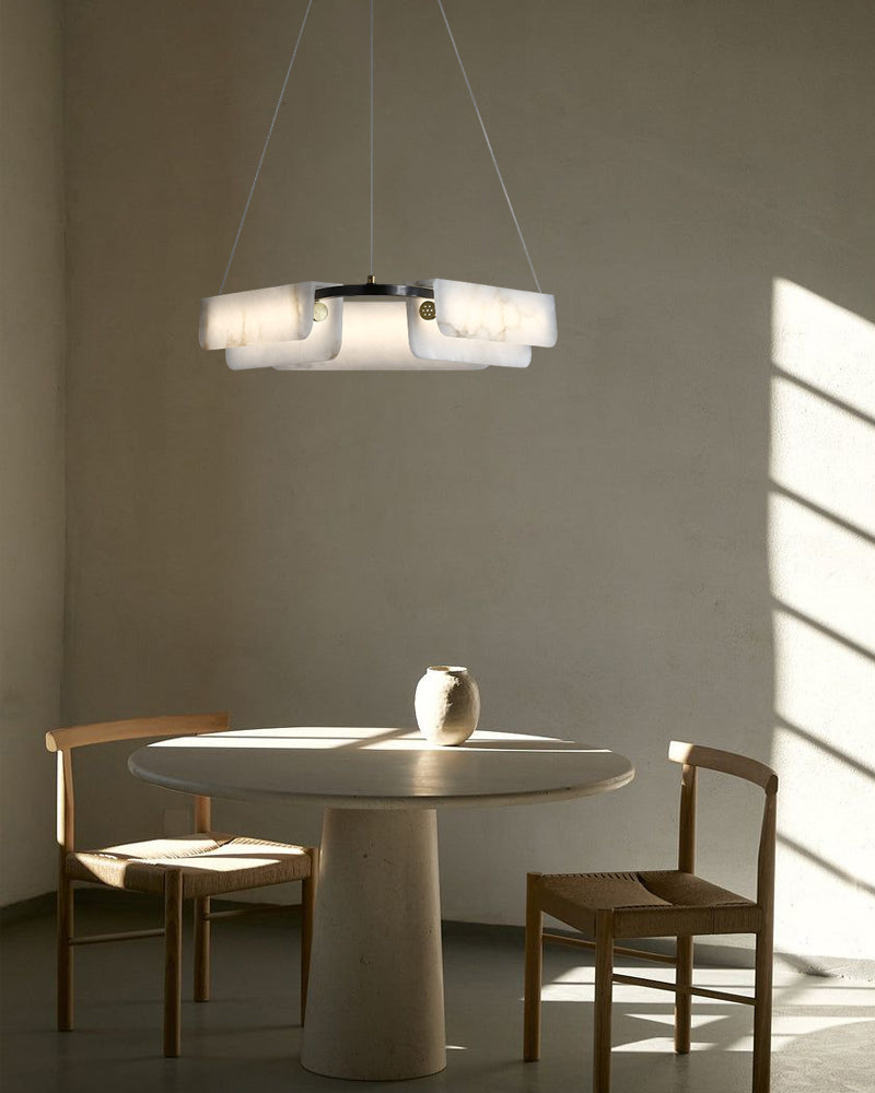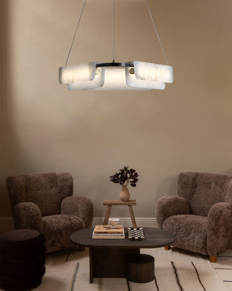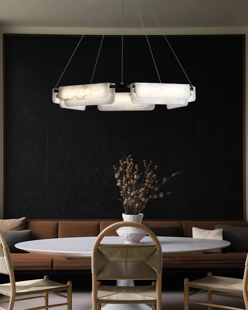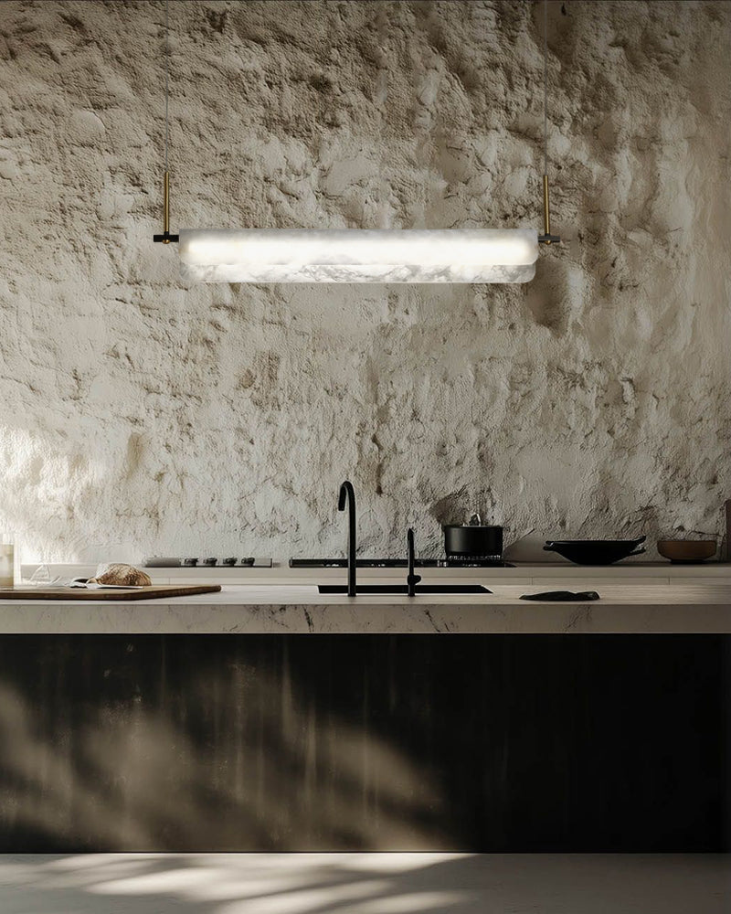 Modern Linear Black Metal Elegant Alabaster Pendant for Living room Lighting