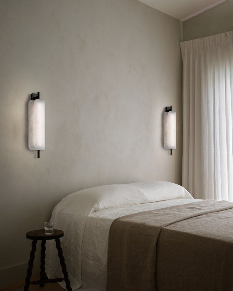 - White marble lampshades with natural veining for a unique and luxurious look.