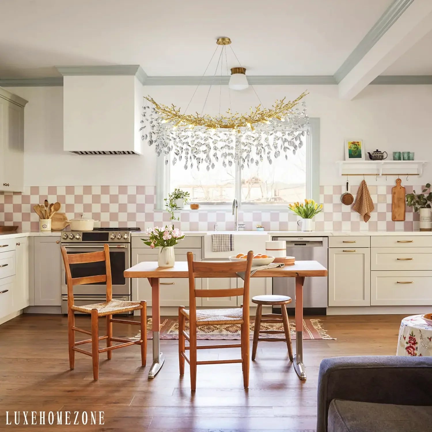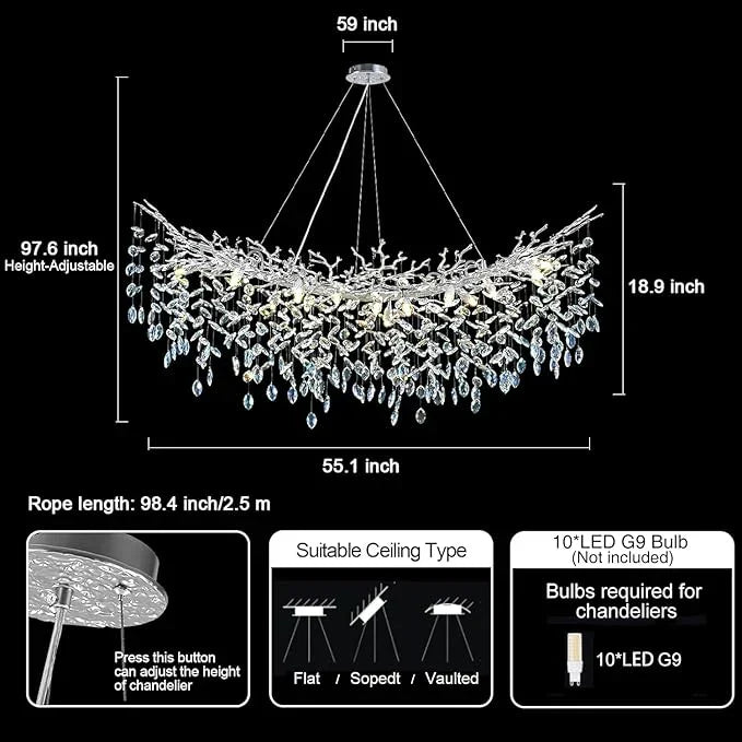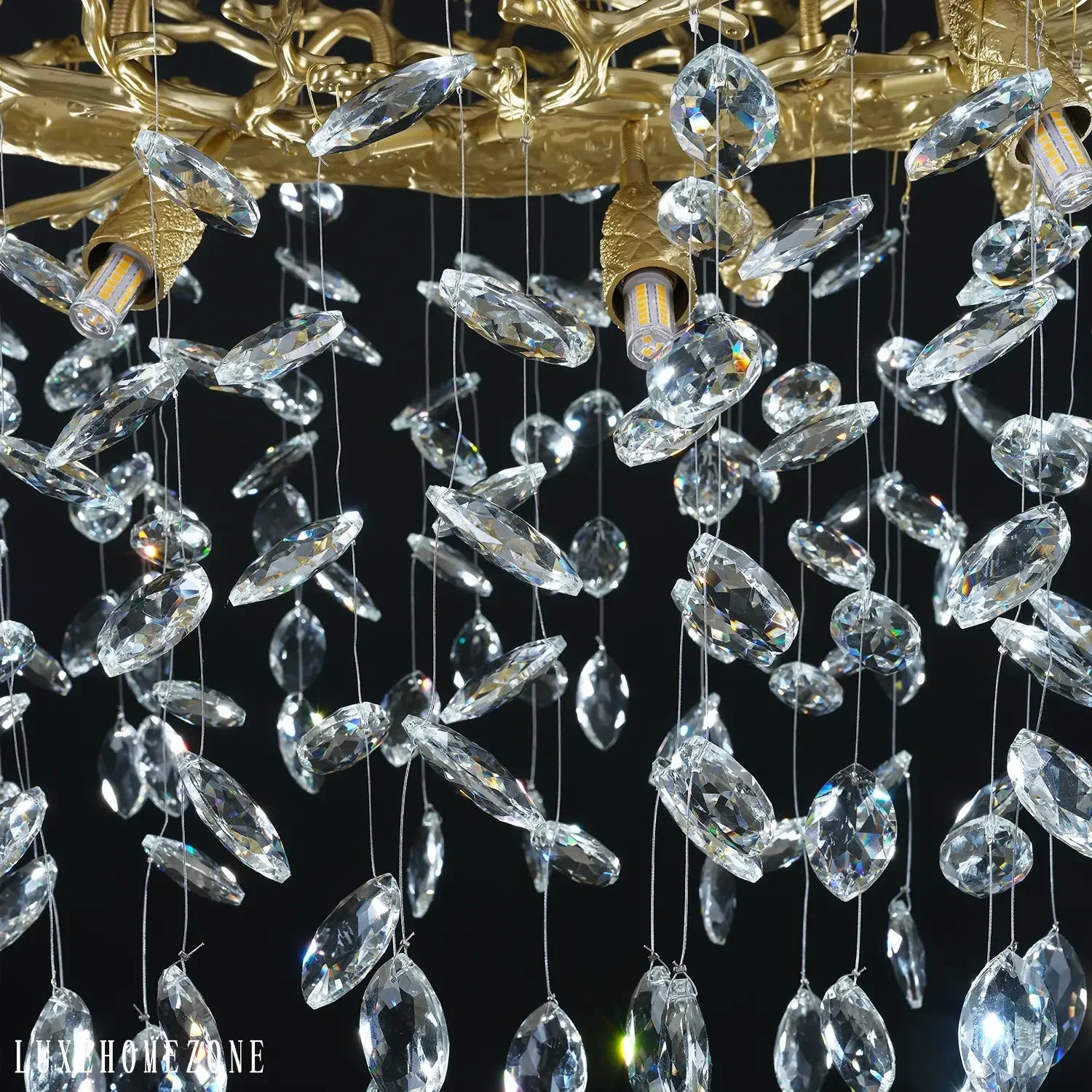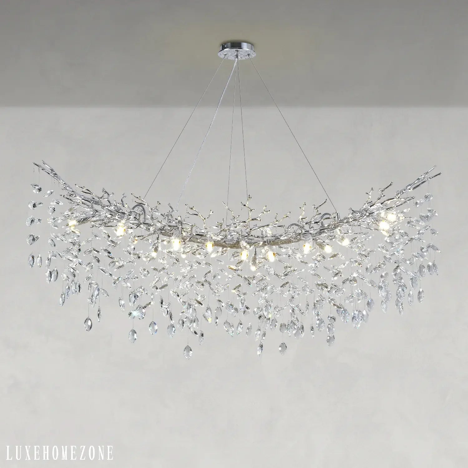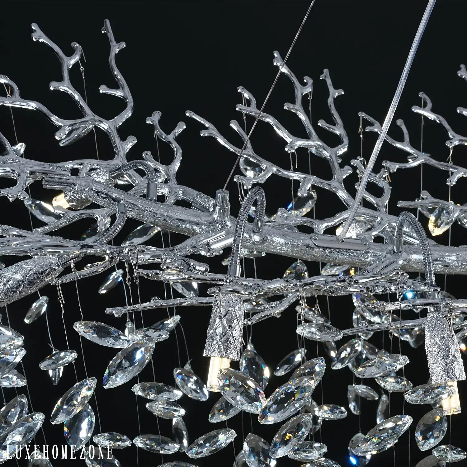 The Solara Rectangular Chandelier 55" 72" Tree Branch Tree Branch stands as a luxurious and intricately designed masterpiece, ideal for grand staircases or as a captivating focal point in rooms or lobbies, making a bold statement. This chandelier is part of our branch detail chandelier collection, drawing inspiration from the beauty of nature and meticulously handcrafted to perfection.