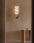 Modern Triple Alabaster Brass Stone Semi-Oval Wall Sconces 6in 15W