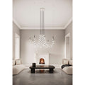 Multidot redefines the traditional chandelier with a contemporary design featuring metal rings that enhance its structural versatility. Suspended from the ceiling, these rings support and shape the light cables, enabling fluid, dynamic forms that evolve visually. Attaching the rings directly to the cables and light spheres creates tension, resulting in sharper, more precise geometries. This combination of elements allows Multidot to blend artistic expression with architectural presence, making it a sophisticated lighting solution for modern interiors.