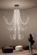 Inspired by classic chandeliers, the Multidot Customize Chandelier reinterprets the traditional candelabra through contemporary design and advanced technology. Its distinctive cables, each adorned with luminous spheres, allow the lamp to seamlessly shift between elegant formality and sleek modernity. This lighting piece blends historical references with innovative elements, offering a versatile fixture that complements both timeless and contemporary interiors.