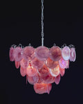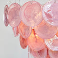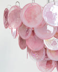 Murano Chandelier 57 Pink. 57 Pink alabaster iridescent glass disks. This chandelier is more than just a lighting fixture, it's a work of art that illuminates your surroundings.