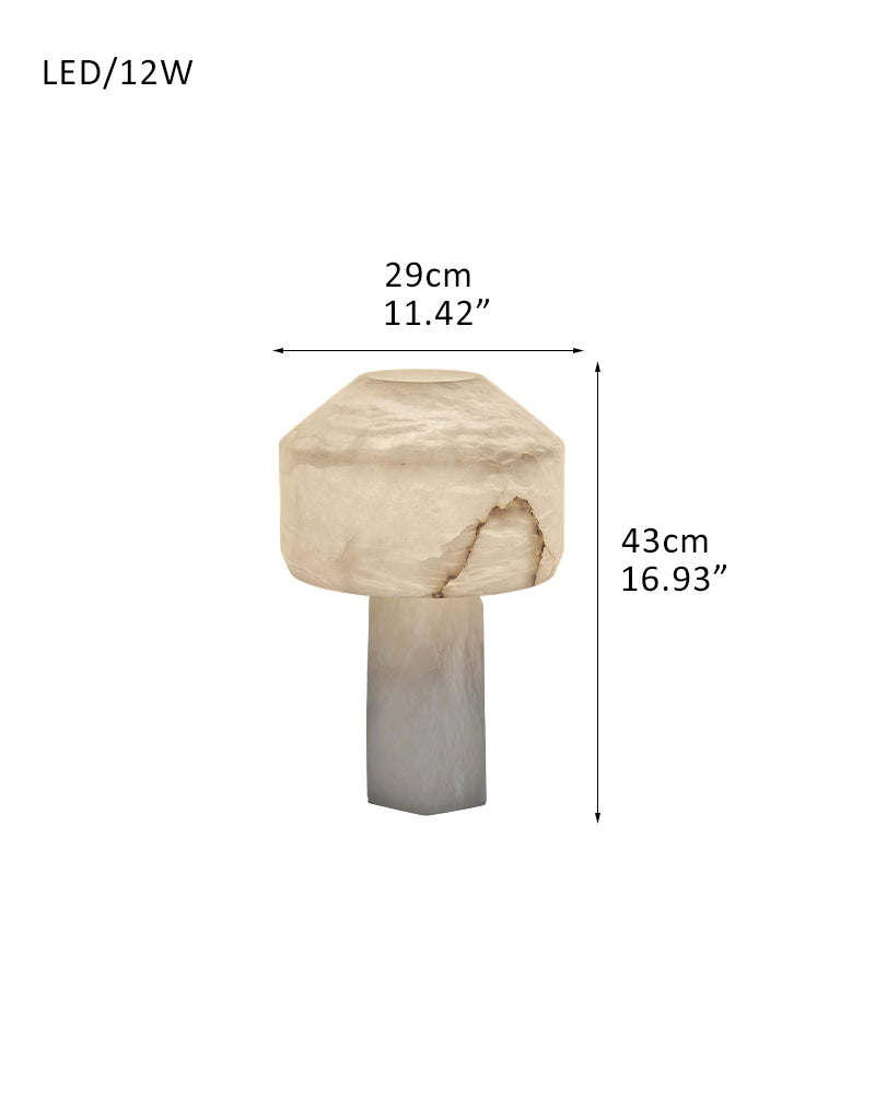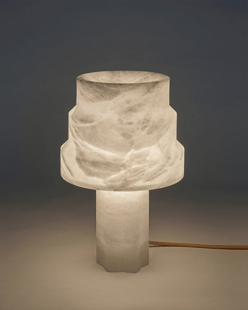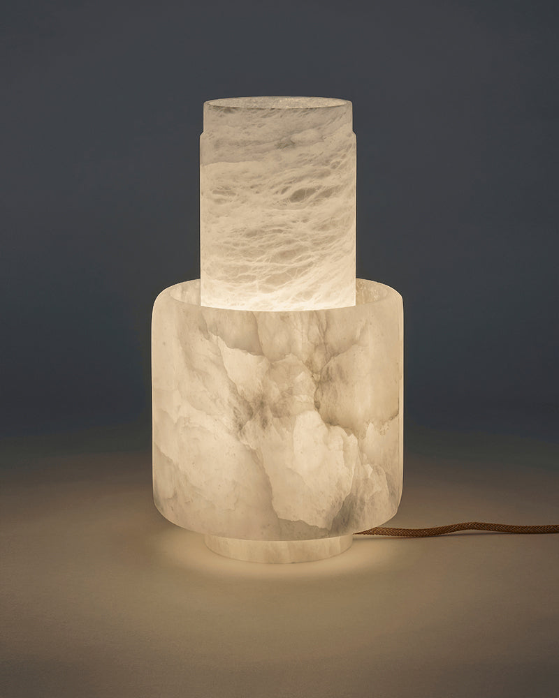 - Alabaster lamp is shapely yet stately, carved from a solid piece of stone.