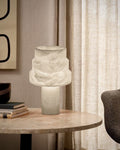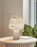 Nature Inspired Cylinder White Alabaster Short Table Lamp 8in for bedroom