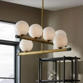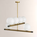 The "Nova" Linear Pendant Light by Oasislive is an innovative blend of minimalist design and modern elegance. Featuring six soft, glowing glass orbs spaced along a sleek, horizontal wooden bar, this chandelier creates a striking visual impact. The carefully crafted brass and wood elements offer a sophisticated, organic touch, while the arrangement of the orbs delivers a contemporary yet timeless appeal. Perfect for above dining tables, kitchen islands, or open-concept living spaces, the "Nova" provides an even, ambient light that enhances the atmosphere of any room with style and grace.