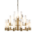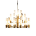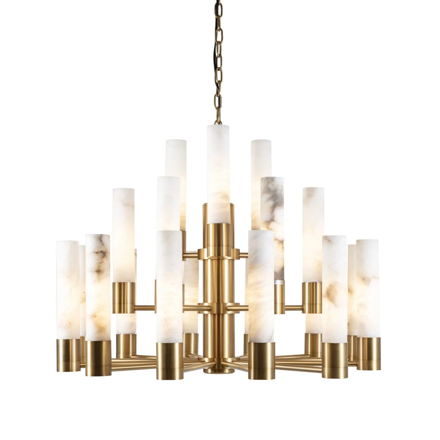 Beautiful statement Spanish Alabaster chandelier. This elegant light features a several alabaster tubes mounted on arms on a brass structure, creating an utterly mesmerising silhouette. This piece boasts an enchanting allure that will bring an industrial lux style to any room in the home.