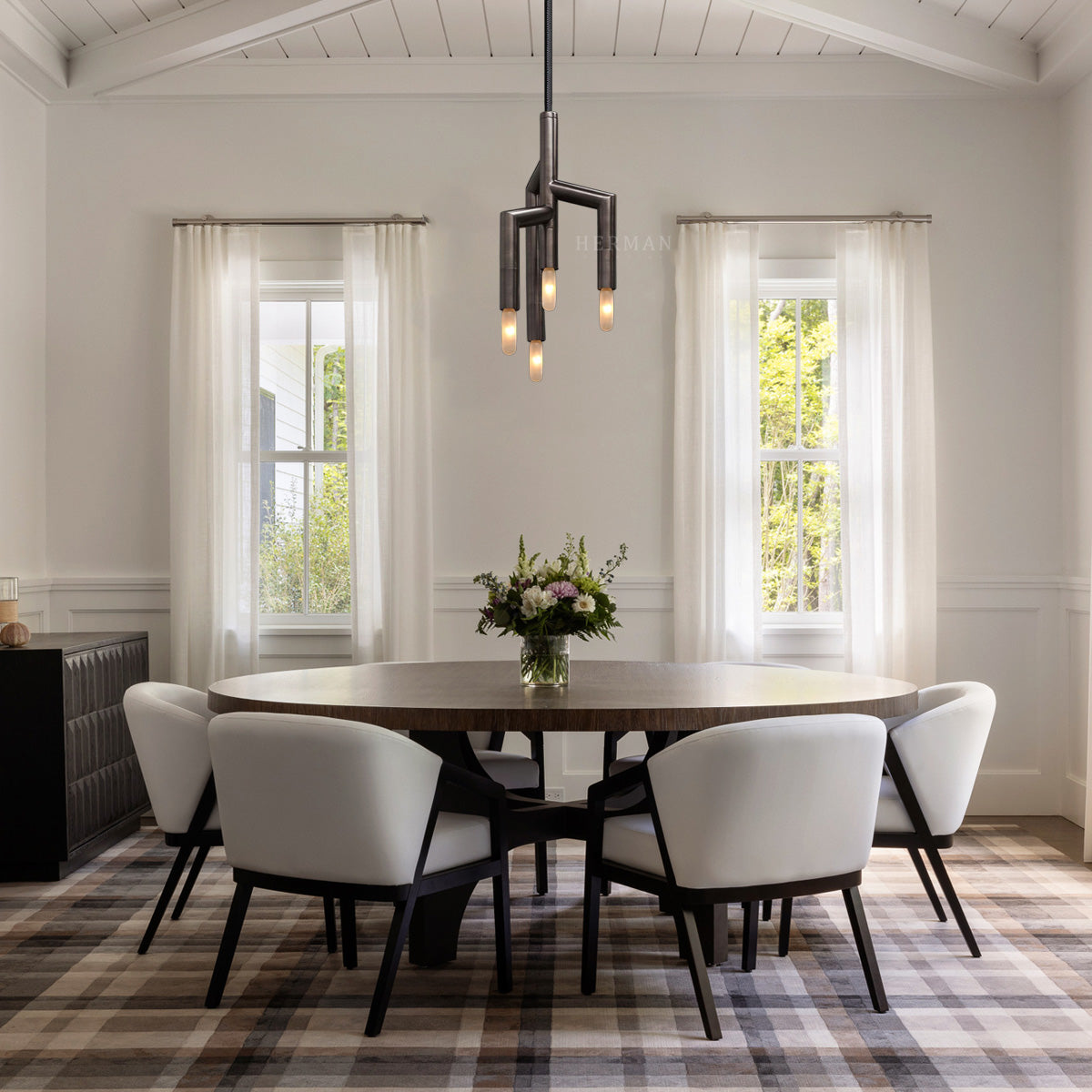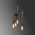 The Ranti Pendant is made up of one brass pendants, each consisting of four lights. All parts are hand polished and patina’d. The ceiling plate is made in stainless steel.