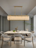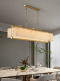 A refined balance of luxury and craftsmanship, this alabaster and brass chandelier brings a warm, luminous presence to any space. Featuring a rectangular alabaster shade with softly glowing veining, the fixture is framed in solid brass for a sophisticated yet modern aesthetic. Ideal for dining areas, kitchen islands, or grand entryways, this piece exudes timeless elegance with its warm diffused light.