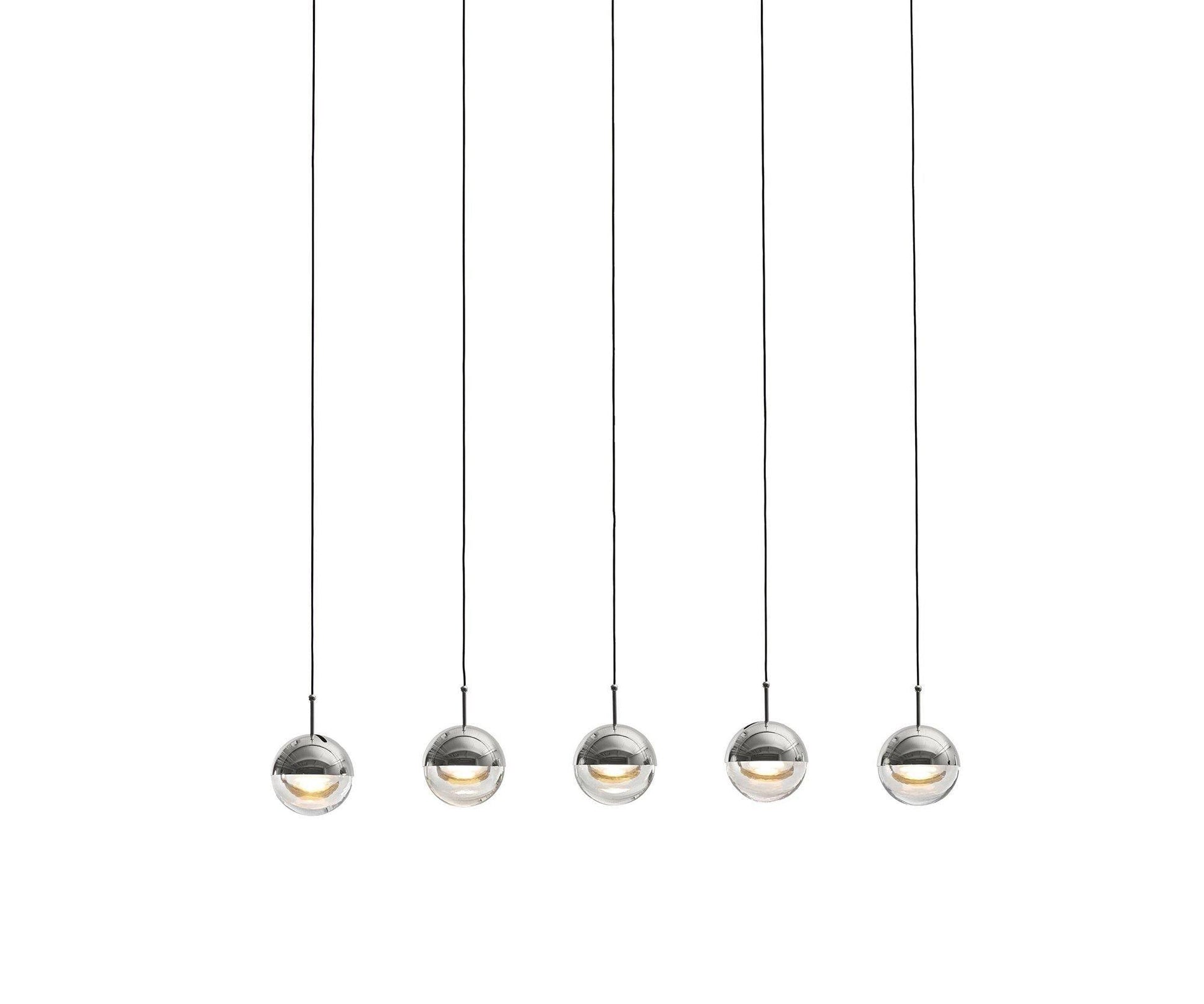 The Restaurant Art LED Pendant Light is a suspended drop light that features a stylish ball made of steel and glass. With its unique half-transparent and half-opaque design, it offers a beautiful contrast that enhances both sides equally. The shade can also be rotated up to 35 degrees to achieve an angled light effect.