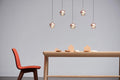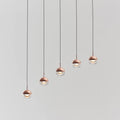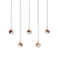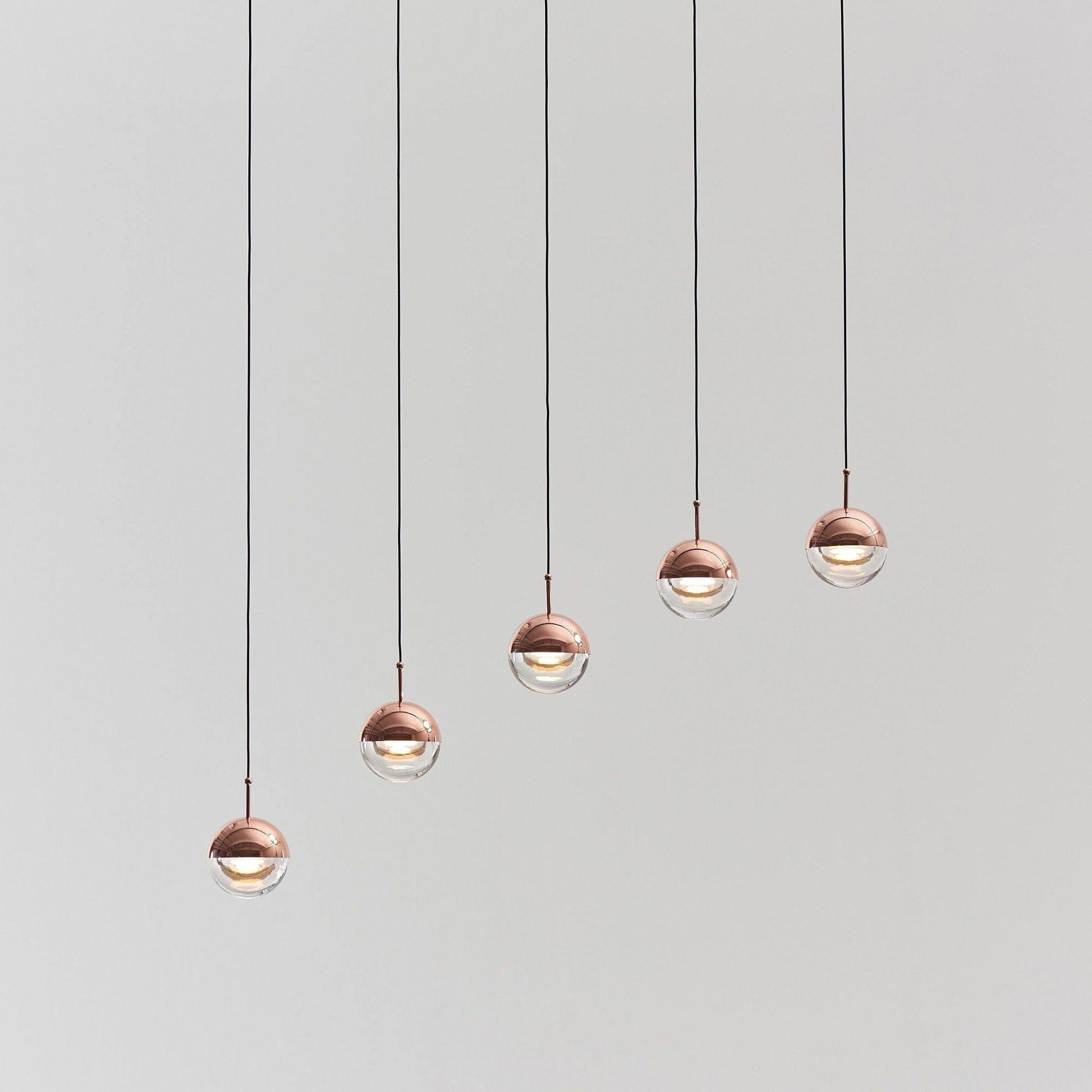 Perfect for any living room or bedroom, this pendant light can be used to highlight a bookcase or a display of objects. It comes in a shiny copper finish with clear glass and includes an LED lamp.