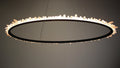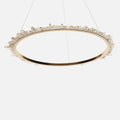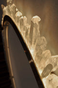 Individually set rock crystals—the purest, rarest form of quartz—are hand-arranged in our chandelier to striking effect. Tightly clustered, the earthy yet ethereal stones read as luminous sculpture. A discreet, integrated LED strip ignites the facets with a warm, molten glow, while near-invisible suspension cables create the illusion of the fixture floating in air. No two pieces are alike; each one is a singular work of light and stone.