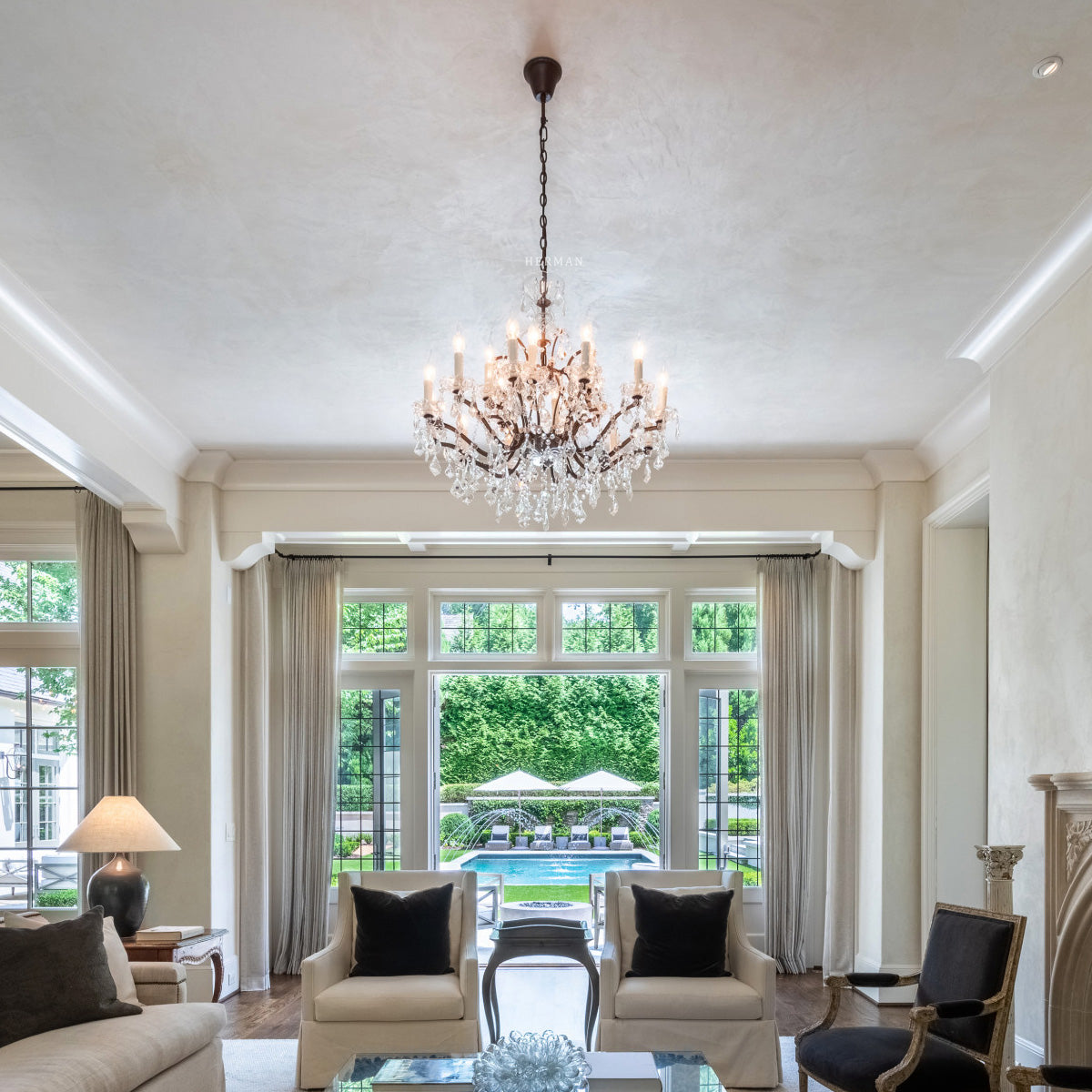 - Chandelier Body: 32¾" diam., 27½"H