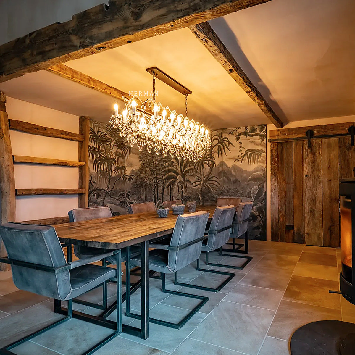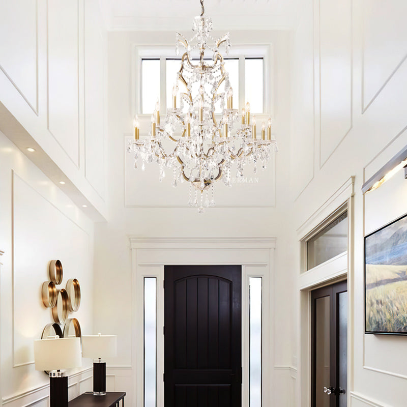 Inspired by the elegance of 19th-century European lighting, the Rocaille Collection blends ornate form with timeless sparkle. Each chandelier features a sculptural hand-forged metal frame, adorned with a cascade of precision-cut crystal prisms that capture and reflect the light in every direction. The contrast between the rustic finish and the refined crystal detailing creates a look that is both romantic and dramaticāperfect for dining rooms, entryways, or any space in need of a grand statement.