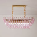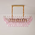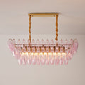 Delicate yet bold, the Hermanlamps Rose Prism Glass Chandelier brings a soft touch of modern luxury to your space. Featuring a tiered arrangement of rose-tinted crystal glass prisms, this rectangular chandelier radiates warmth and charm with a hint of romance. The light reflects gently through the faceted glass, creating a captivating ambiance. Supported by a sleek gold frame and fabric-wrapped suspension, it’s ideal for dining rooms, kitchen islands, or any space in need of a sophisticated and stylish statement piece.