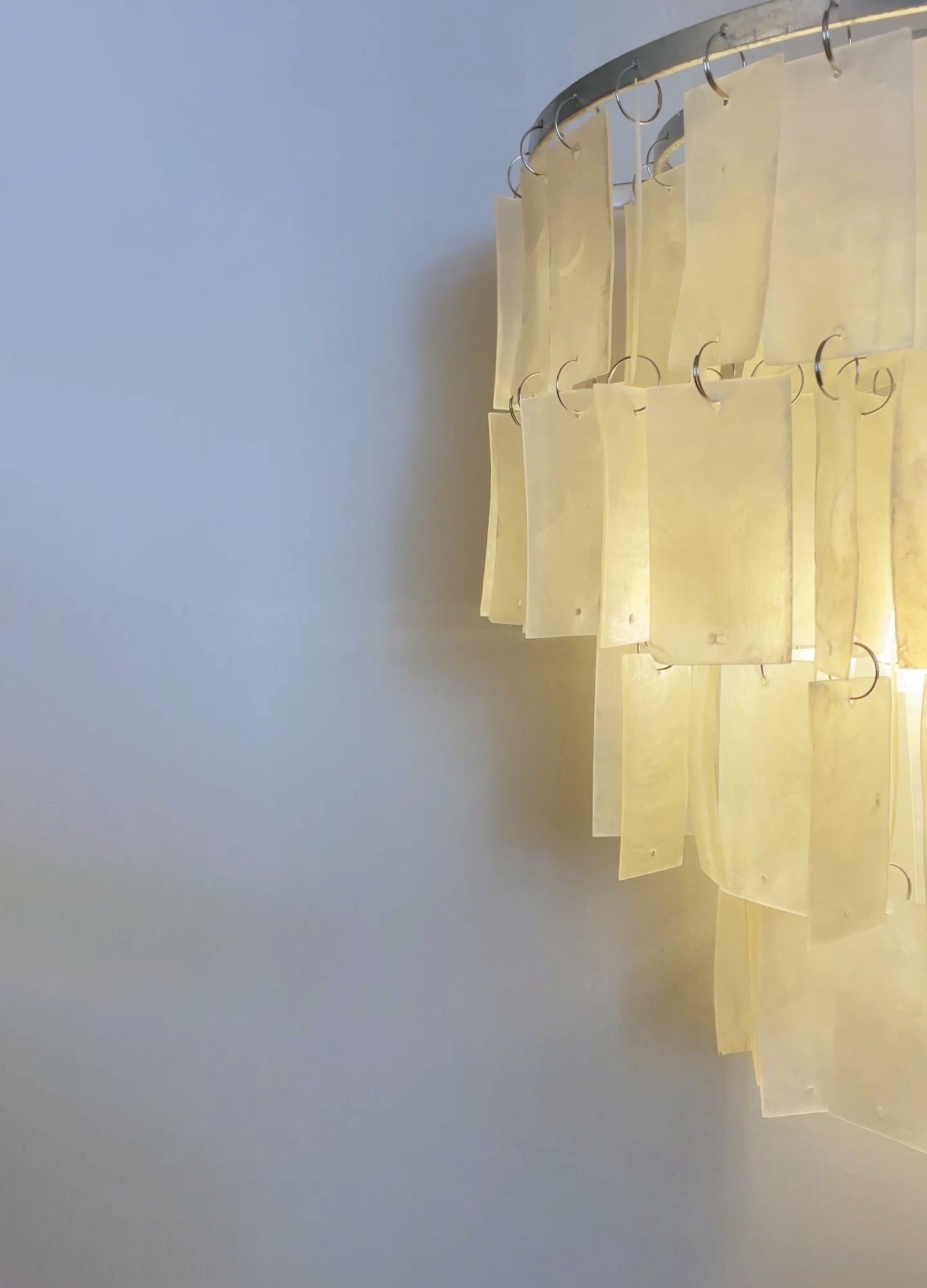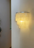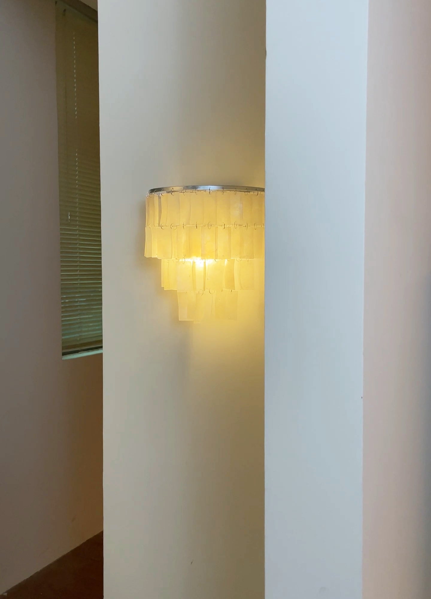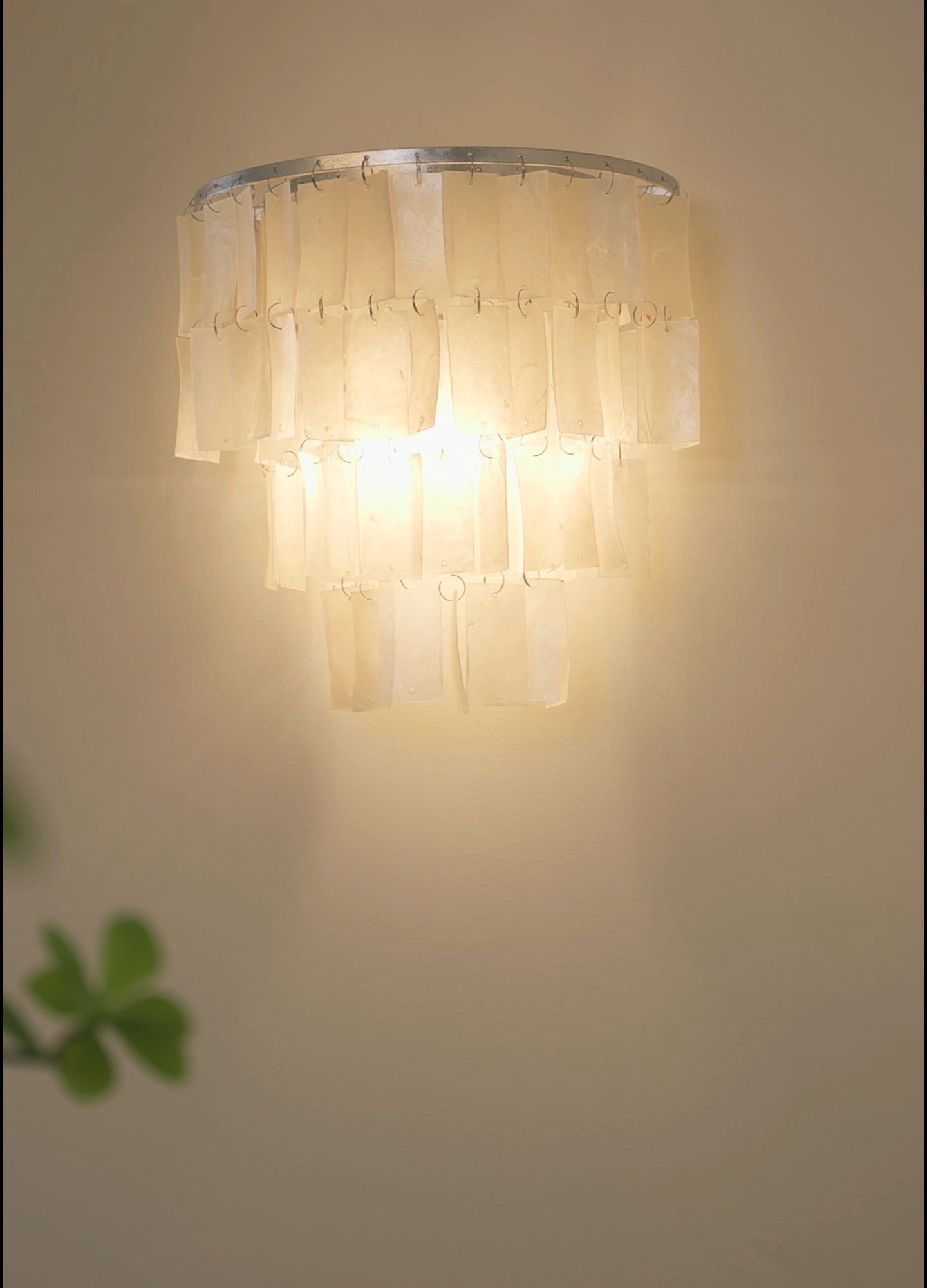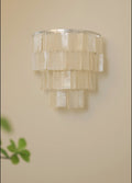 Skye Tiered Wall Lamp, Each shell is translucent in nature, allowing the light to radiate through for an intriguing effect. Bring a warm glow to your space and bring artistic serenity.