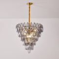 Striking a perfect balance between elegance and edge, the Hermanlamps Smoke Gray Crystal Empire Chandelier brings refined drama to any room. Featuring layered tiers of hand-cut smoke gray crystal prisms, this chandelier forms an inverted pyramid silhouette that captivates from every angle. The muted gray tones offer a modern twist on classic opulence, while the gold-finished frame and fabric-wrapped suspension cord add warmth and contrast. Ideal for grand foyers, staircases, or contemporary dining areas, this piece is both bold and timeless.