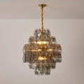 Refined and sculptural, the Hermanlamps Smoke Gray Prism Round Chandelier showcases a harmonious balance of classic glamour and contemporary design. Its rounded, tiered silhouette is formed by layers of faceted smoke gray glass prisms, which catch and diffuse light in a soft, moody glow. Accented with a luxurious gold-finished frame and velvet-wrapped suspension, this chandelier makes a sophisticated statement in living rooms, foyers, or elegant dining areas. Part of the Hermanlamps Prism Series, it offers timeless beauty with a modern edge.