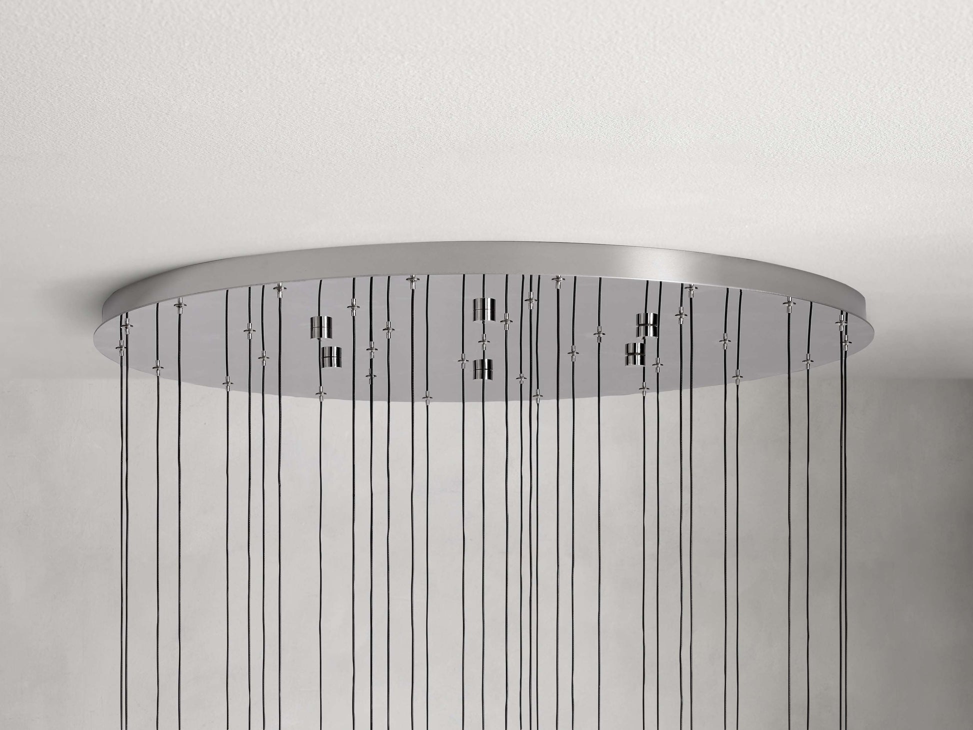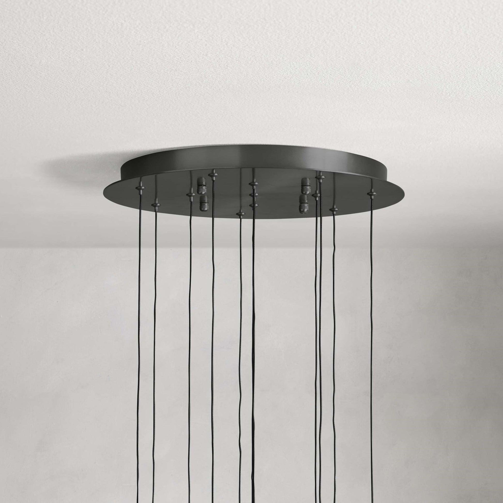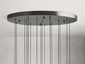 We hung the canopy at the landing and let a few pendants run long. Fills the vertical space without feeling heavy—exactly what we needed.