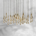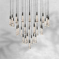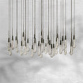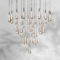 The bubble glass catches the light in the prettiest way. We staggered the drops at different lengths and it looks like a little waterfall in the foyer.