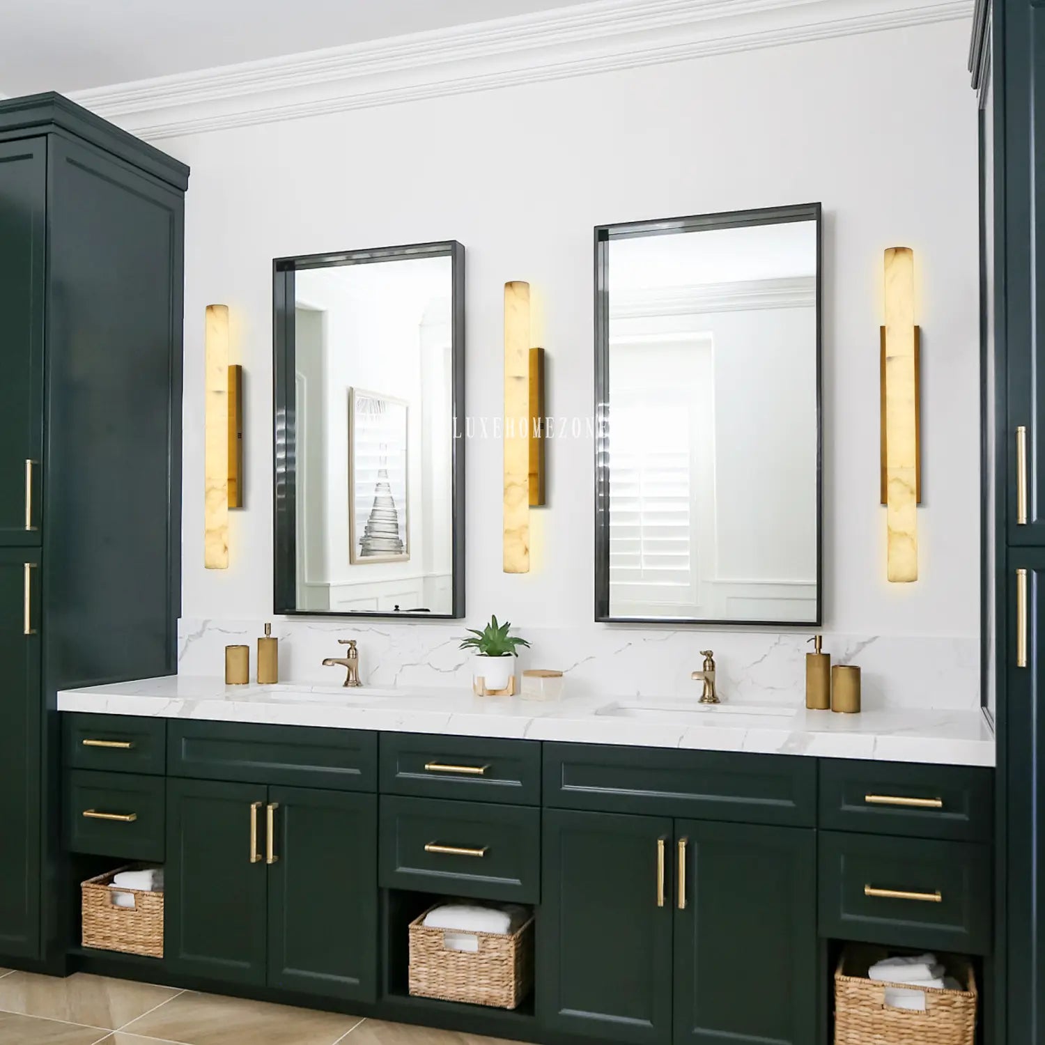 Elegant alabaster sconce is handcrafted of metal & natural alabaster imported from Spain, all with one-of-a-kind patterns, which are formed by geological processes. Delicately selected, carved & polished, the sconces wall lighting show off the inherent beauty of rare natural stones, add a sophisticated touch to your any space.