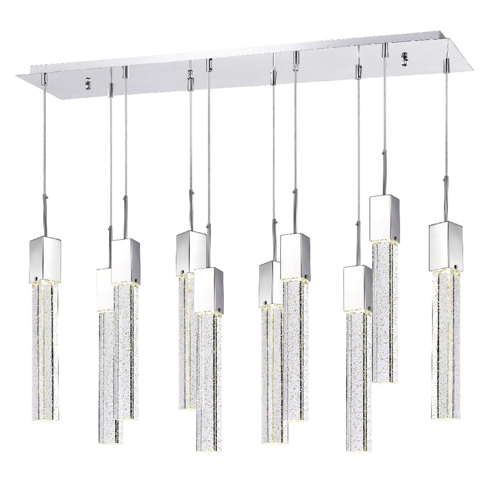 This Finesse Decor piece is made from high end glass crystal and chrome metal finish. Each of the extra large crystals have a sparkling bubbles look inside, giving it a luxurious and glamorous glance.Ā