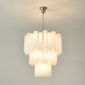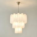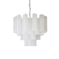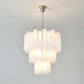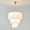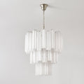 The Frosted Mist Chandelier features elegant, misty white glass panels that cascade in a multi-tiered design, reminiscent of soft, drifting clouds. The frosted, haze-like finish on each glass element adds a layer of subtle sophistication, diffusing light gently to create a calm and serene atmosphere. With its sleek, modern design and muted, misty white color, this chandelier blends effortlessly into minimalist or contemporary spaces, making it perfect for living rooms, dining areas, or large open foyers. The Frosted Mist Chandelier is the ideal choice for those seeking an understated yet luxurious centerpiece that radiates elegance and tranquility.