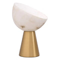 Featuring a conical base with antique brass finish and an alabaster shade in the shape of a crescent moon, this elegant designer lamp creates a striking silhouette.Specifications