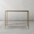 Inspired by 19th century French garden tables, neoclassical forms are reimagined with a modern sensibility. The slim frame features an X-shaped stretcher combined with a rounded center piece that showcases the beauty of hand-cast metal and adds exquisite detail.